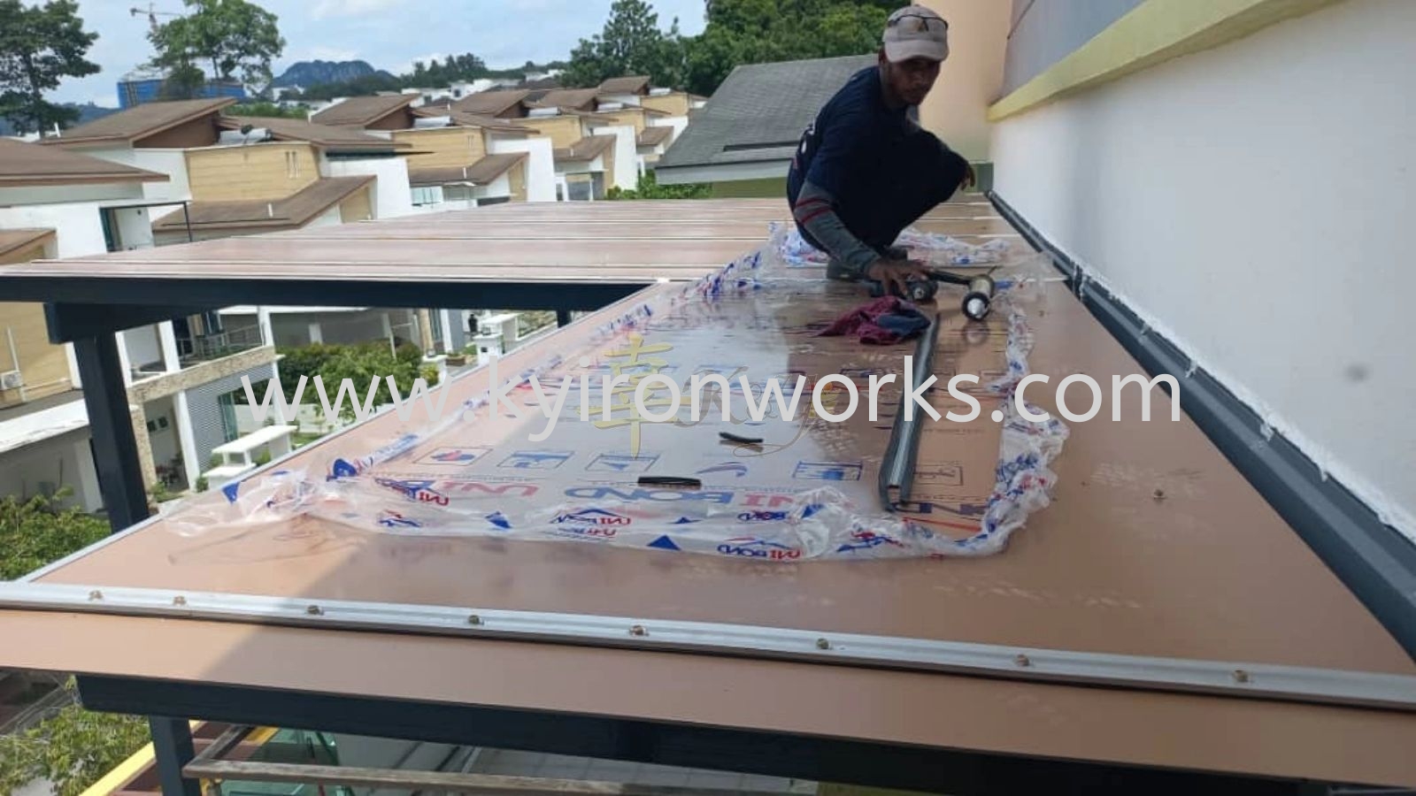 Installation Mild Steel Aluminium Composite Panel (ACP) Pergola Roof Awning at Ampang