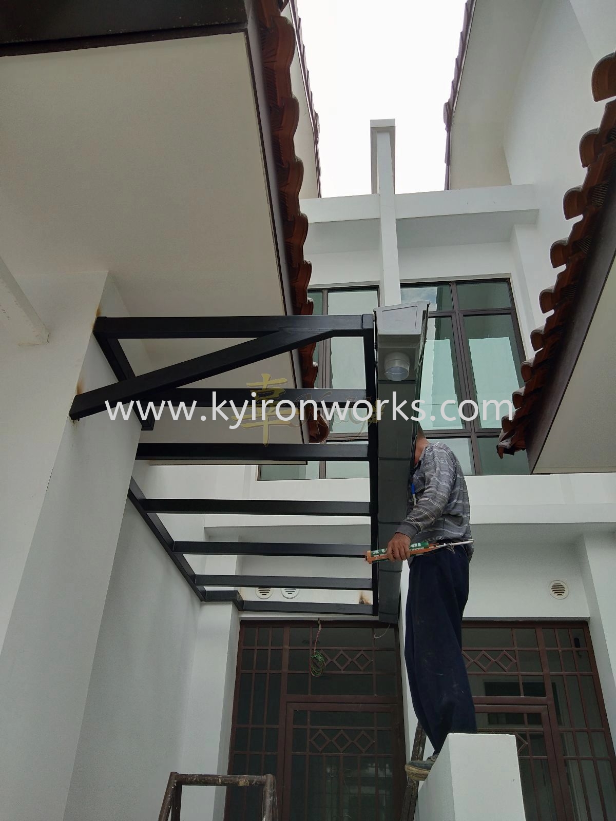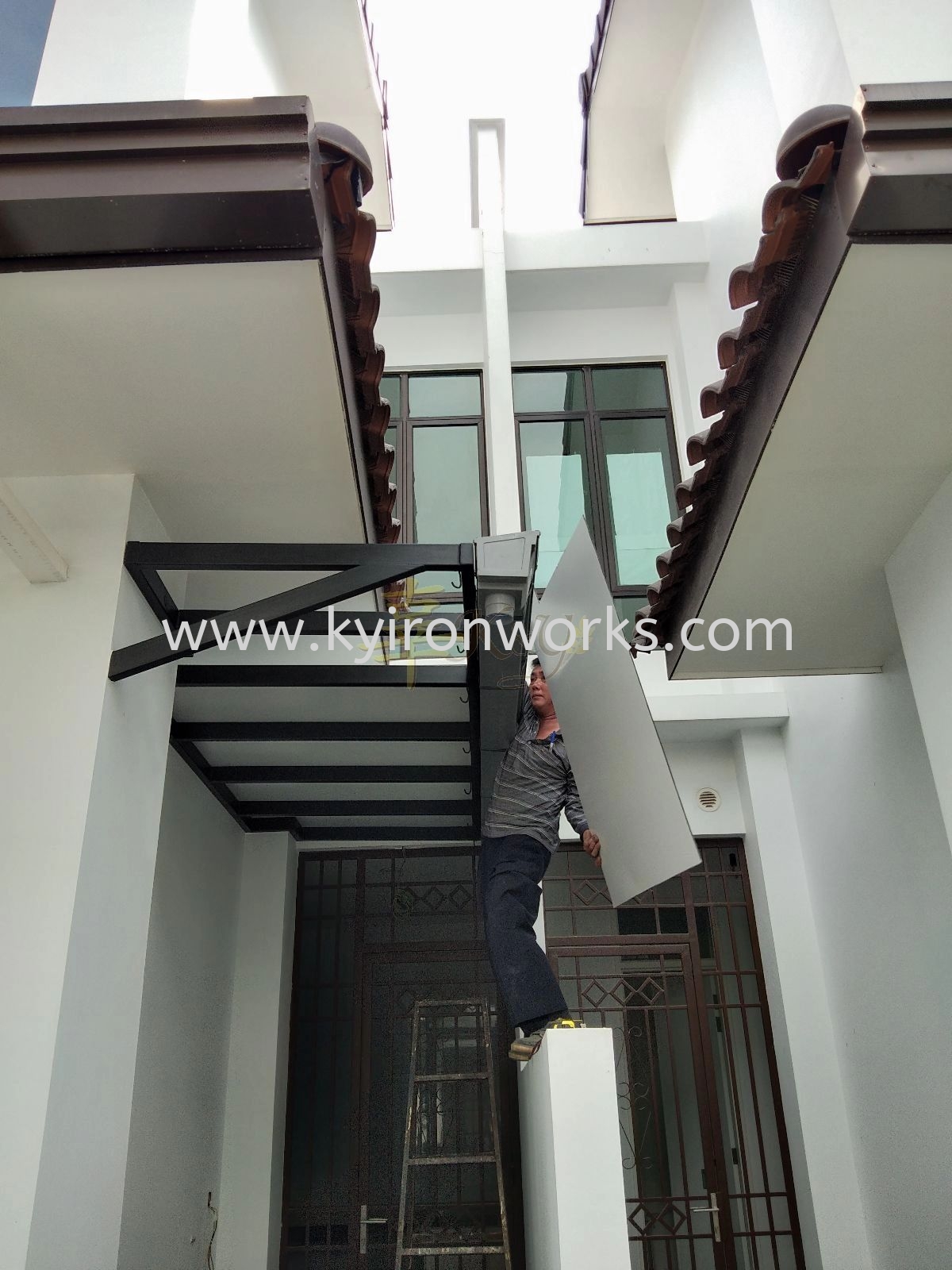 Installation Mild Steel Aluminium Composite Panel (ACP) Pergola Roof Awning at Eco Majestic in Semenyih