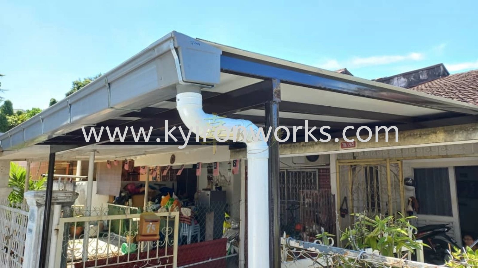 Installation Mild Steel Aluminium Composite Panel (ACP)Pergola Roof Awning with PVC Gutter at Bandar Teck Kajang