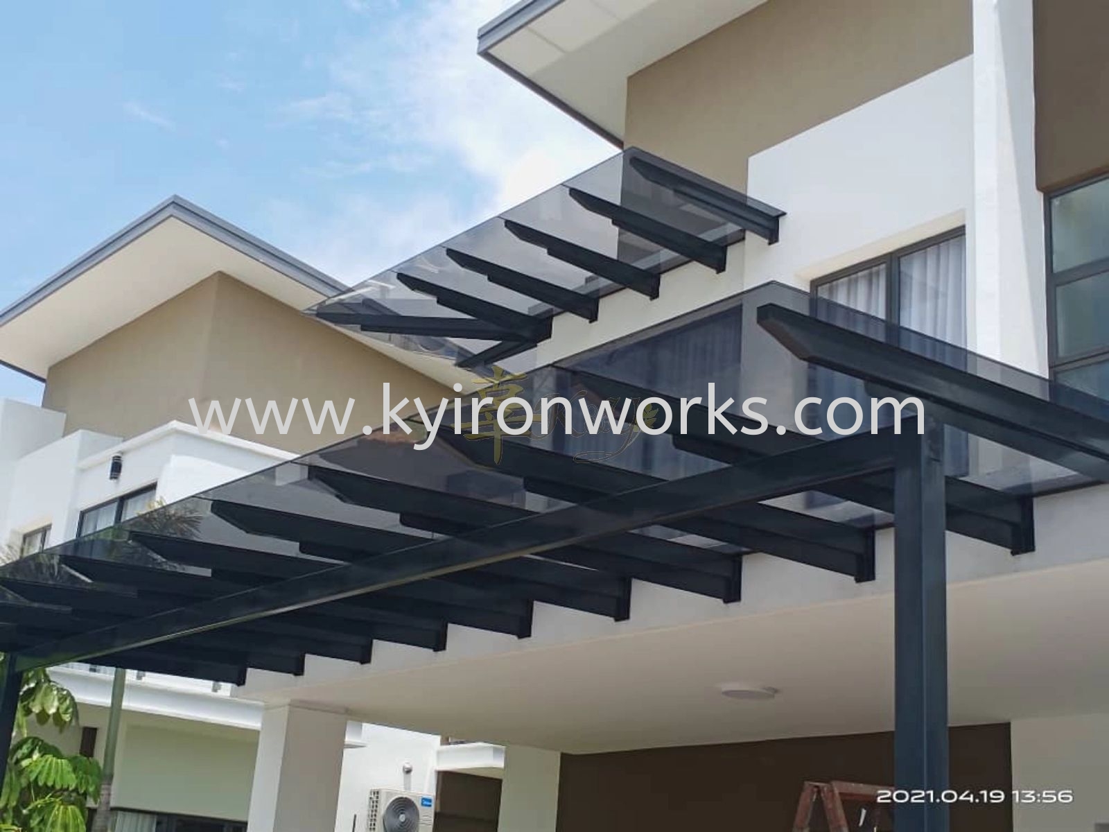 Installation Mild Steel Laminate Glass Roof Awning at Eco Majestic Semenyih