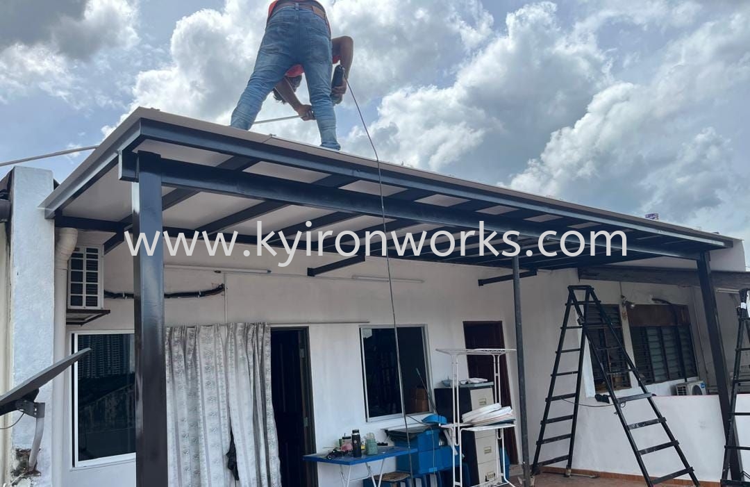 Installation Mild Steel Aluminum Composite Panel (ACP) , Metal Deck Awning & Steel Gate at CLC Semenyih Shop House