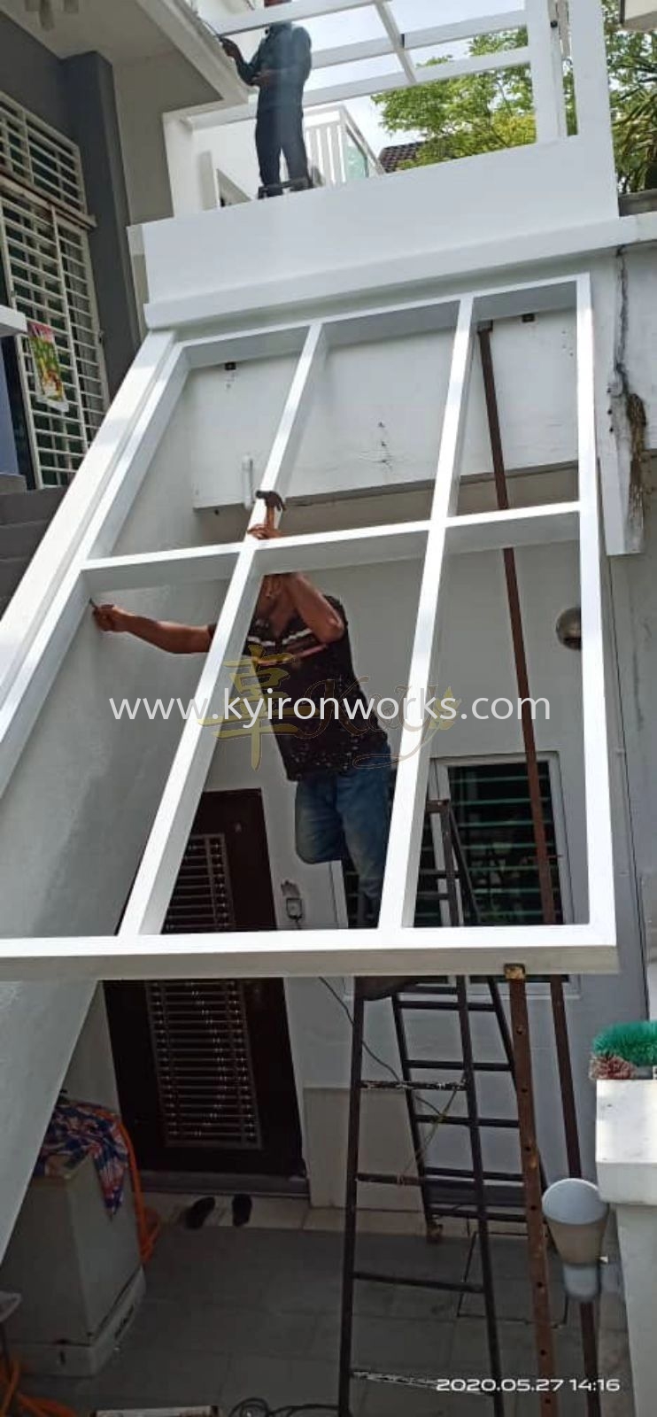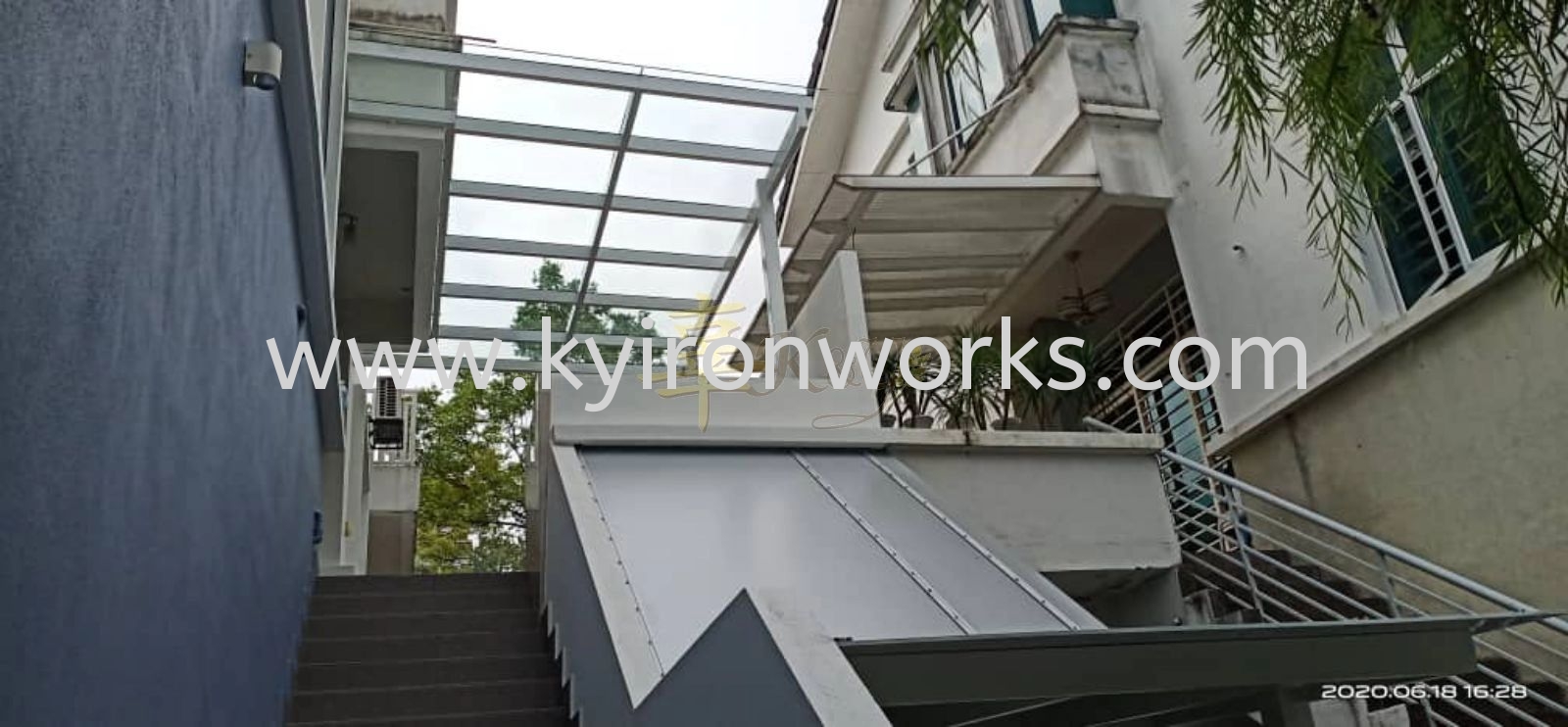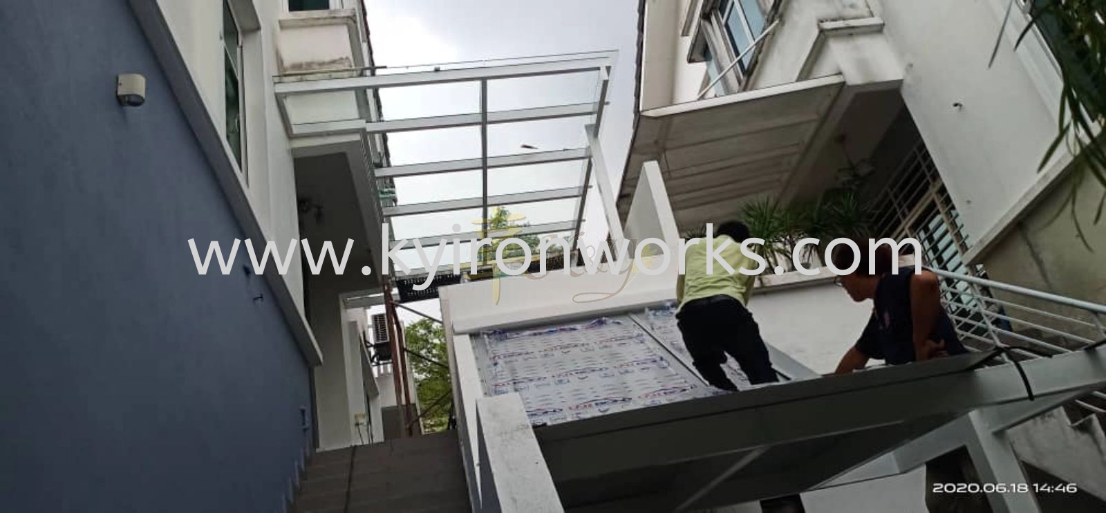 Installation Mild Steel Laminate Glass Roof & Aluminium Composite Panel (ACP) Roof Awning at Damansara