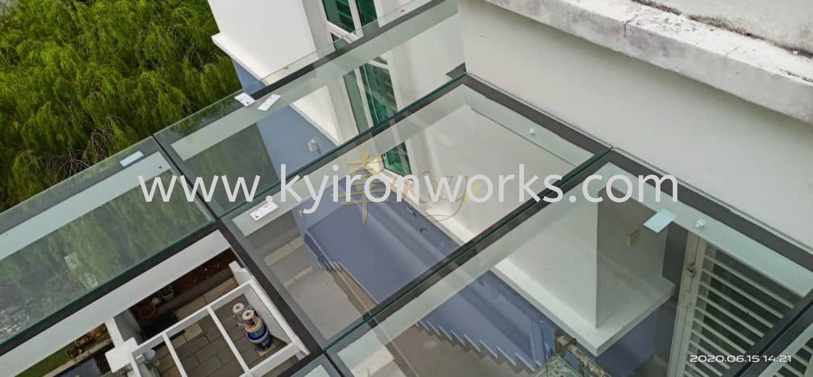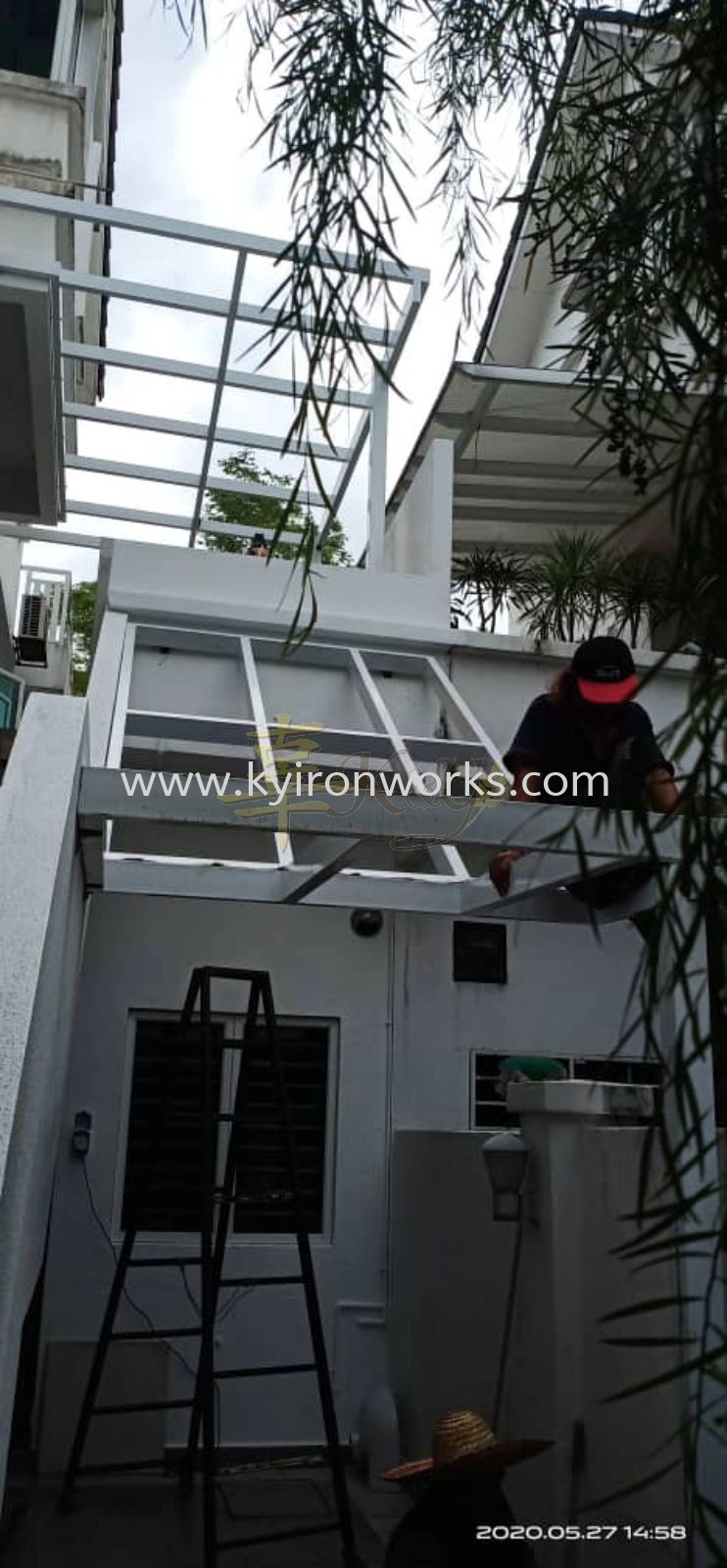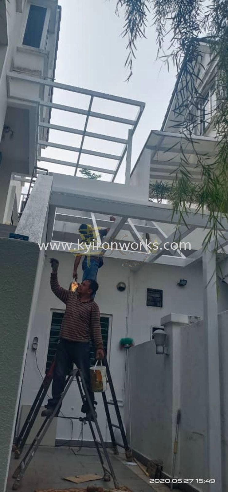 Installation Mild Steel Laminate Glass Roof & Aluminium Composite Panel (ACP) Roof Awning at Damansara