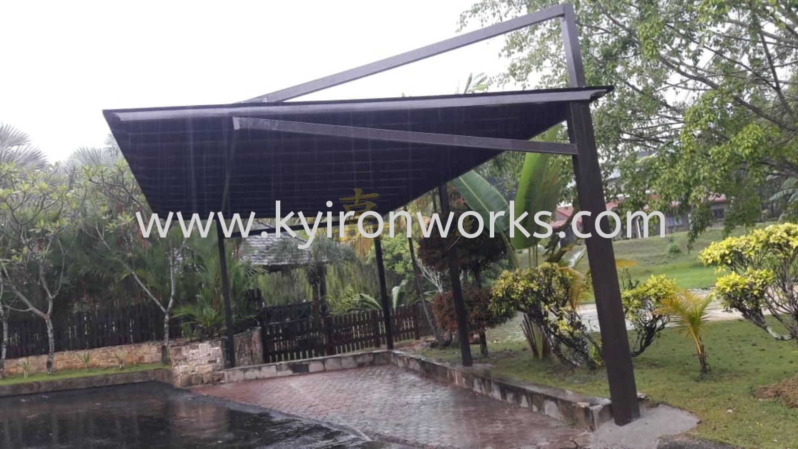 Installation Mild/Wrought Iron Steel Polycarbonate Pergola Roof Awning at Kajang