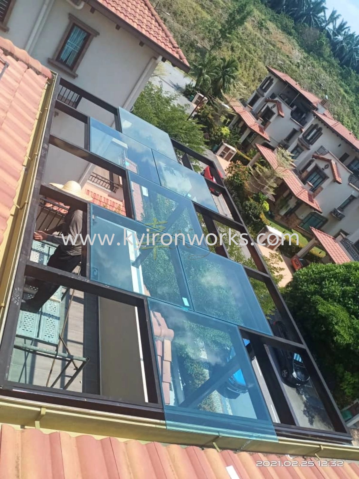 3. Installation Mild Steel Laminate Glass Pergola at Diamond City Semenyih