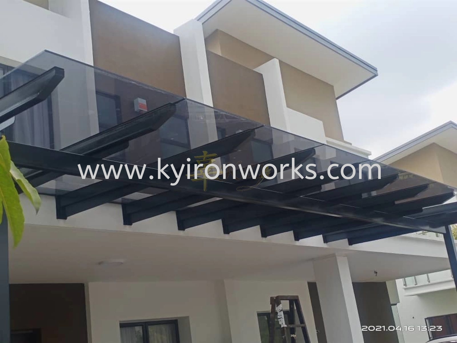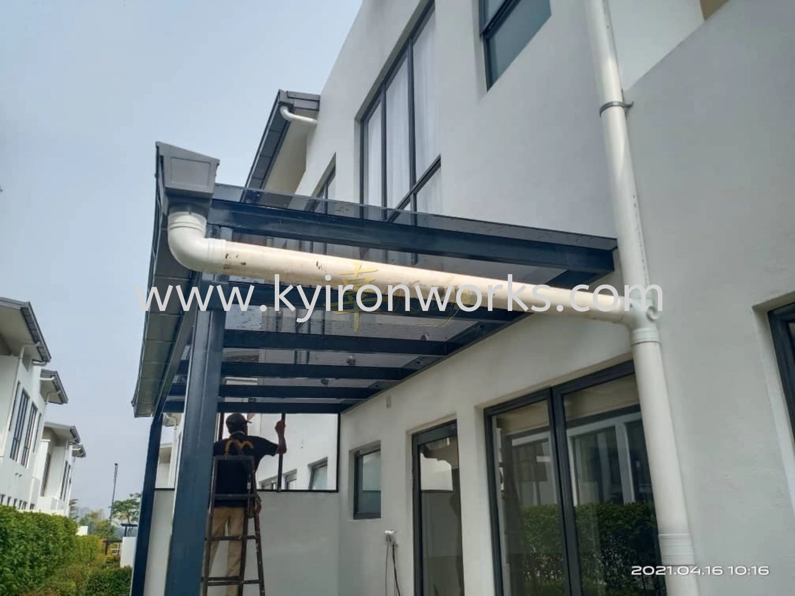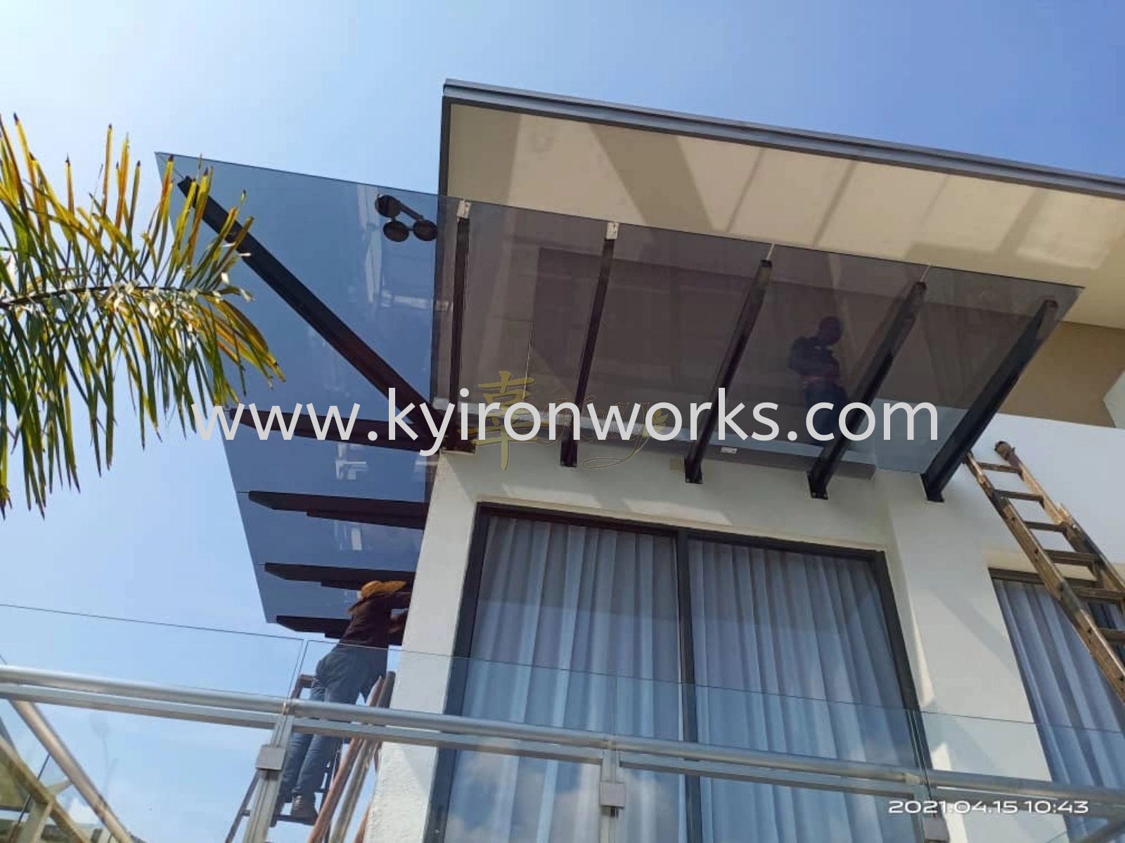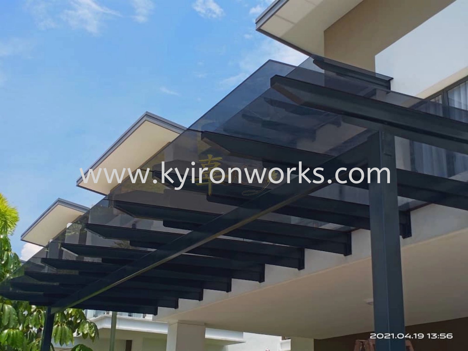 Installation Mild Steel Laminate Glass Pergola Roof Awning at Eco Magestic Semenyih