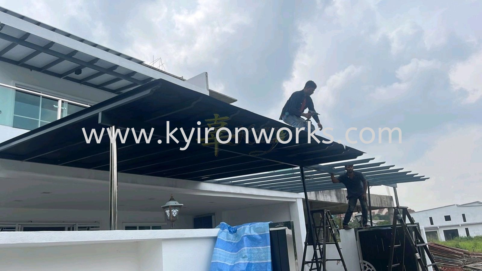 Installation Mild Steel Polycarbonate Pergola Roof Awning at Semenyih