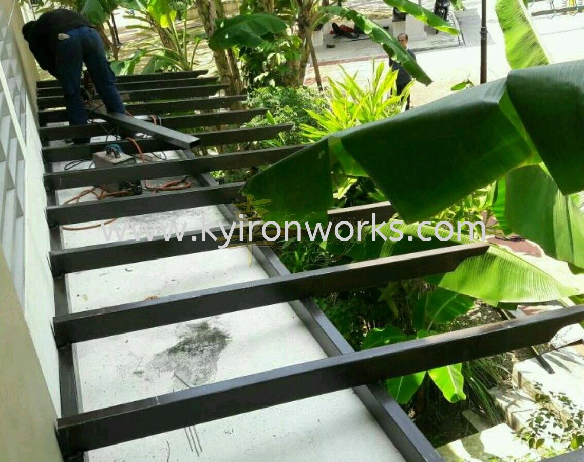 Installation Mild Steel Polycarbonate Pergola Roof Awning at Seri Kembangan