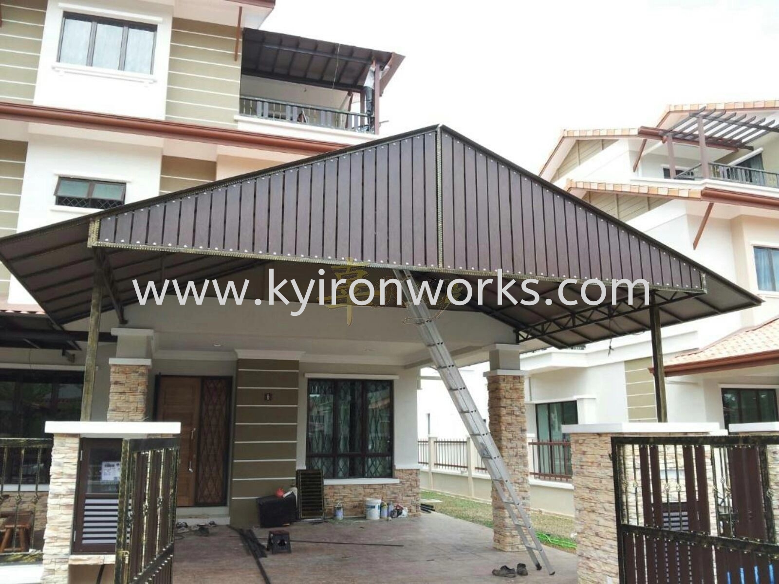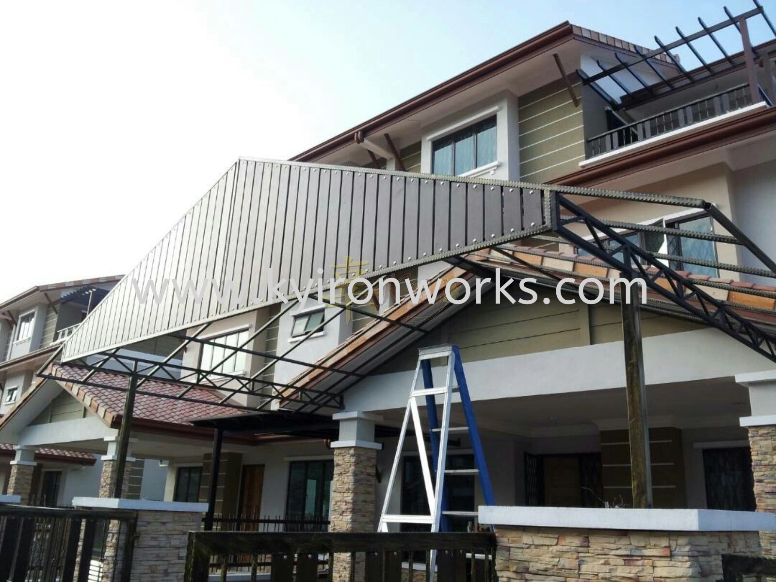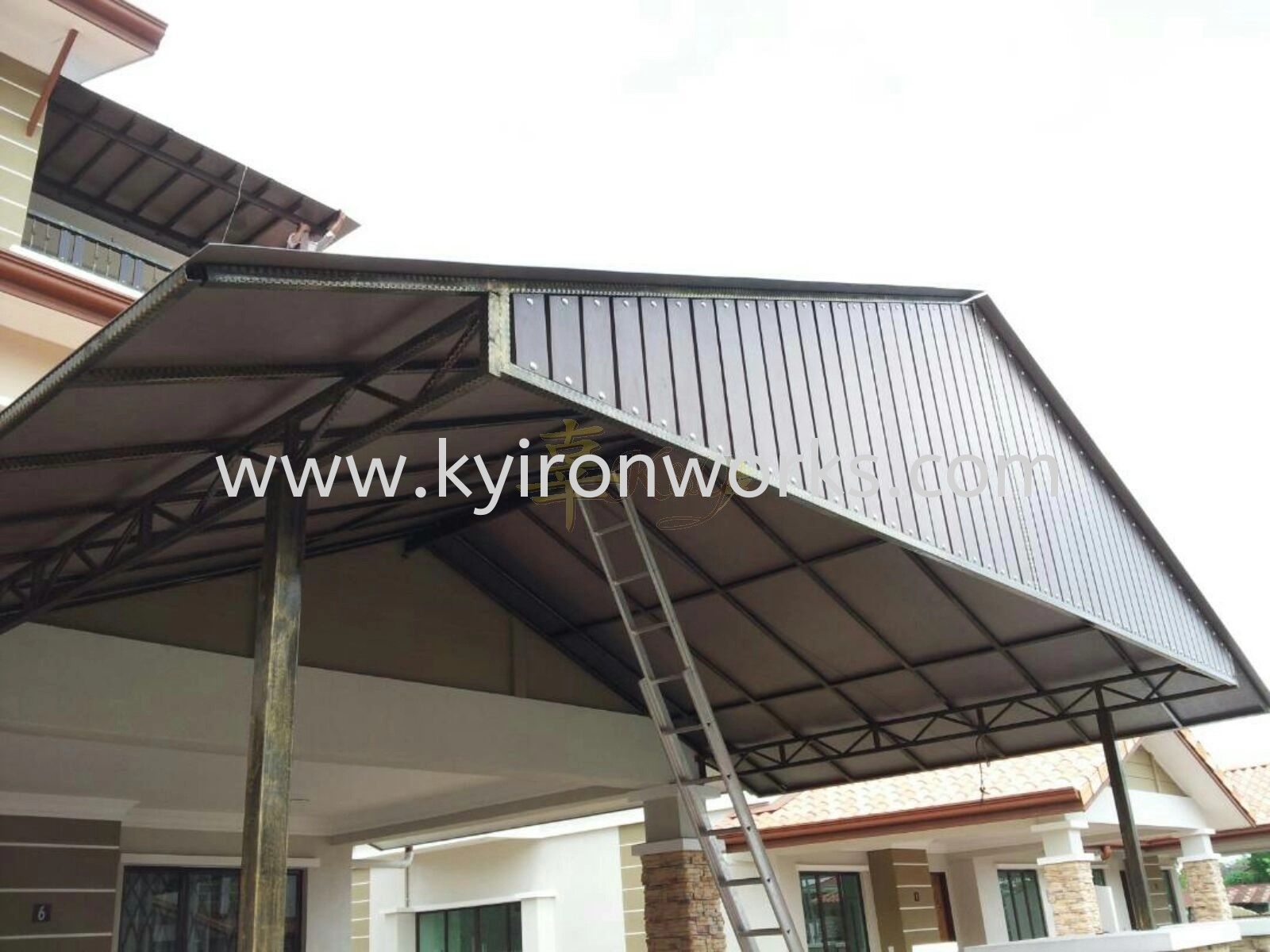 Installation Mild Steel Polycarbonate Pyramid Design Awning & Aluminium Panel at Bangi