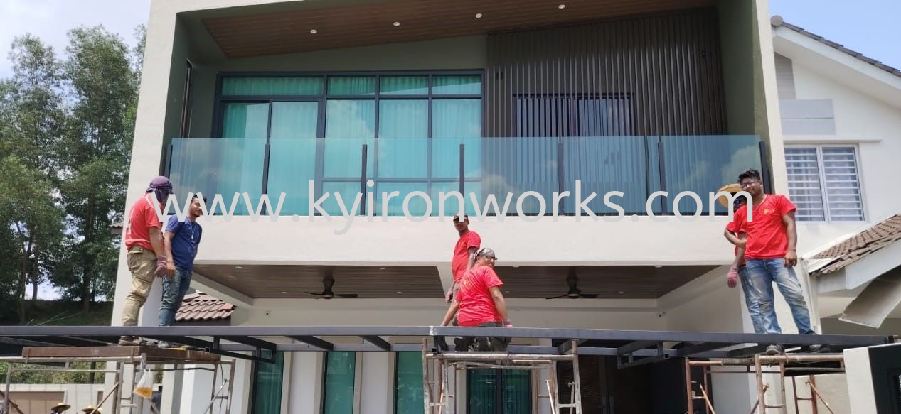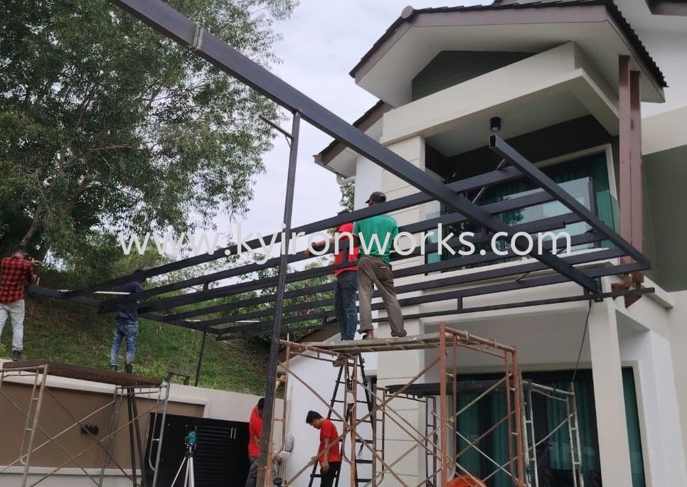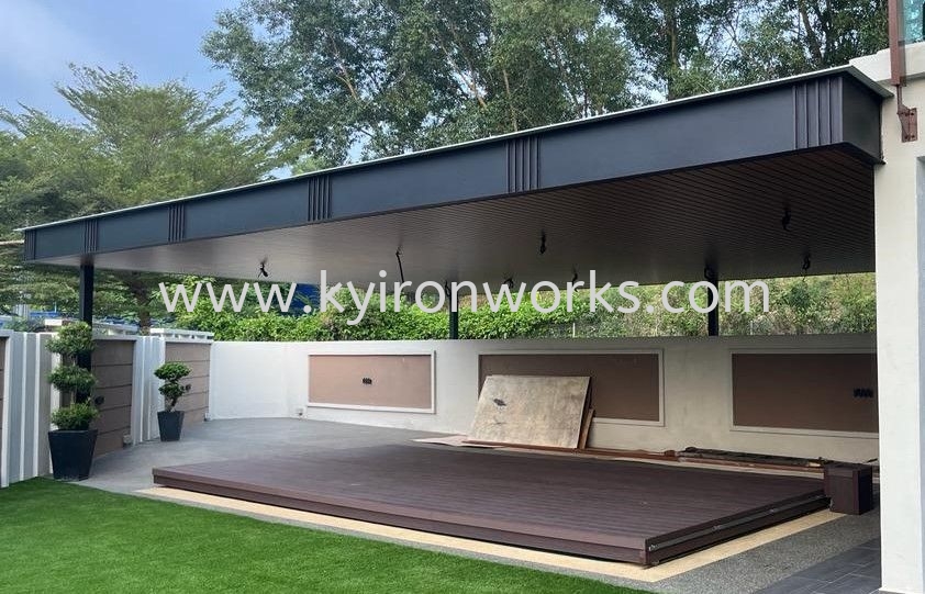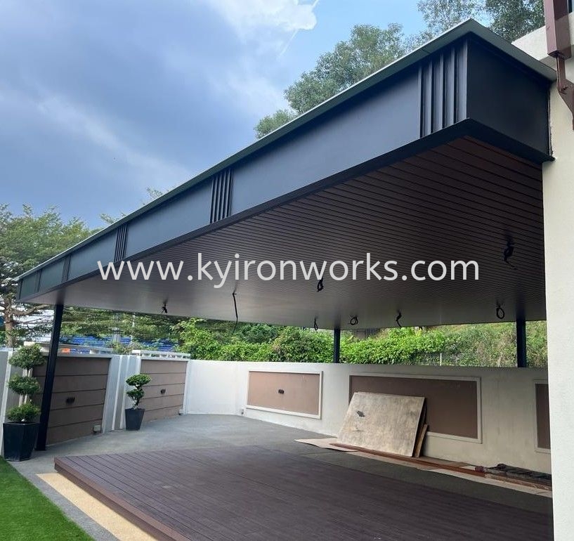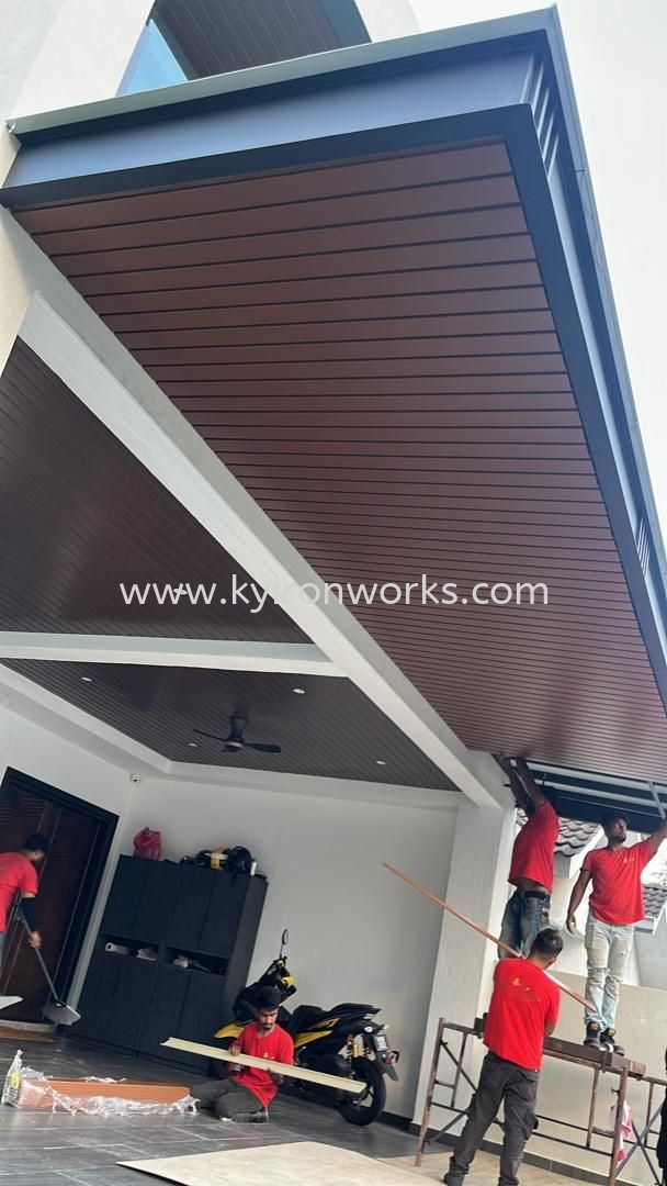 Installation Mild Steel Aluminium Ceillin Strip Awning at Kajang