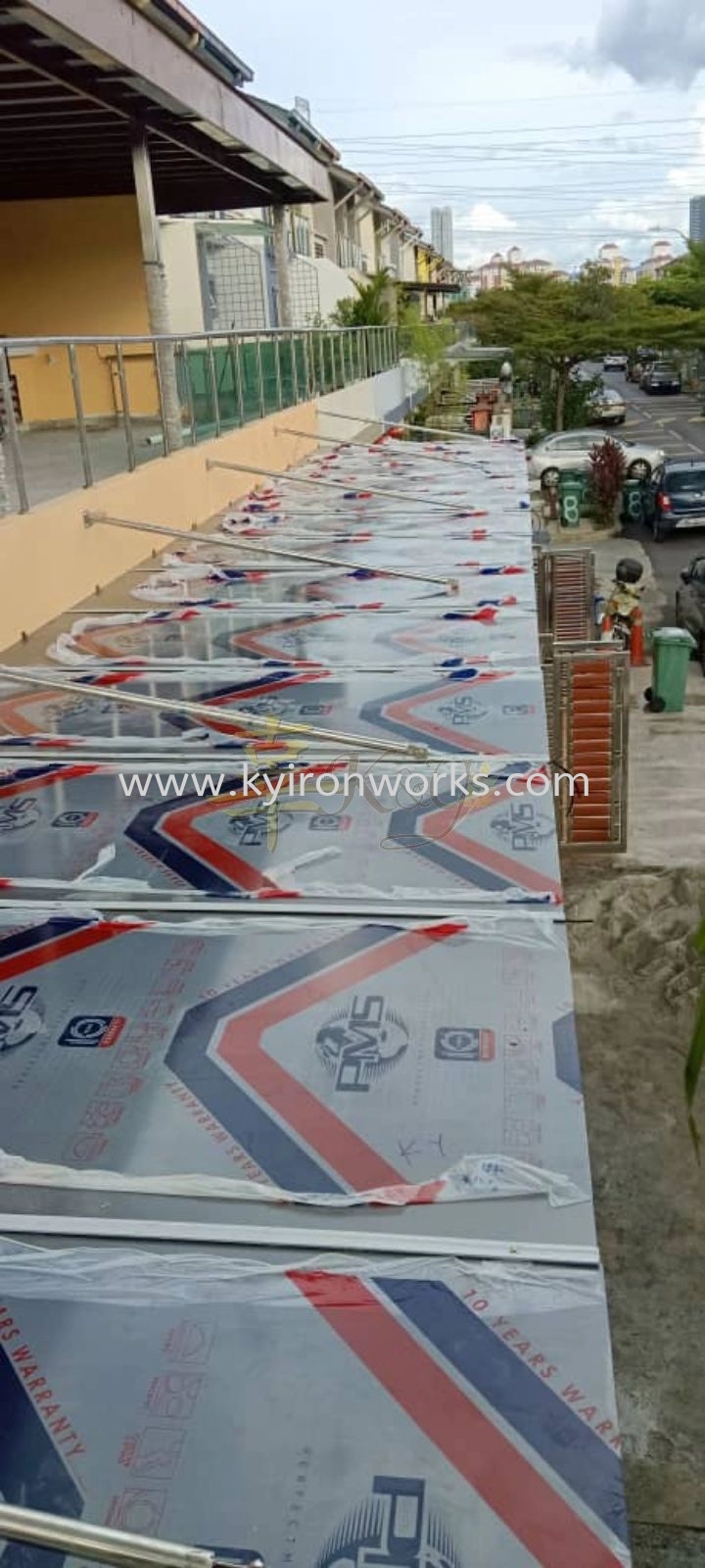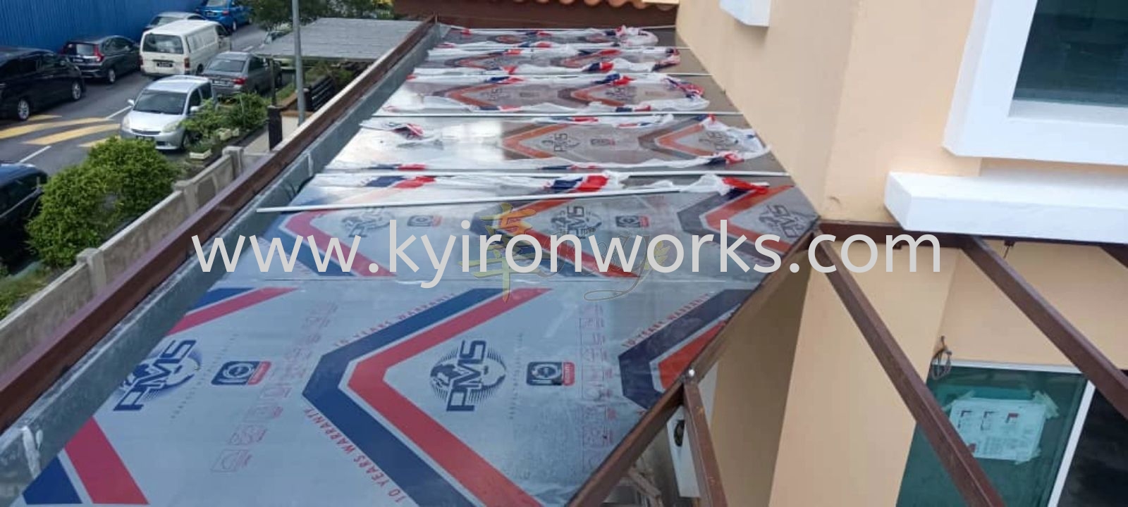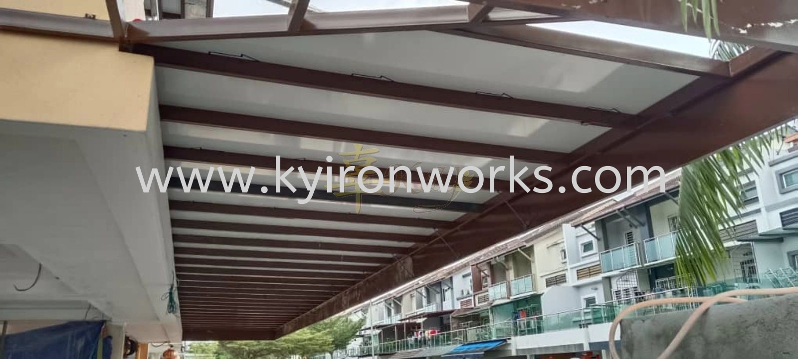 Installation Mild Steel Aluminium Strip Ceiling Awning at Kepong