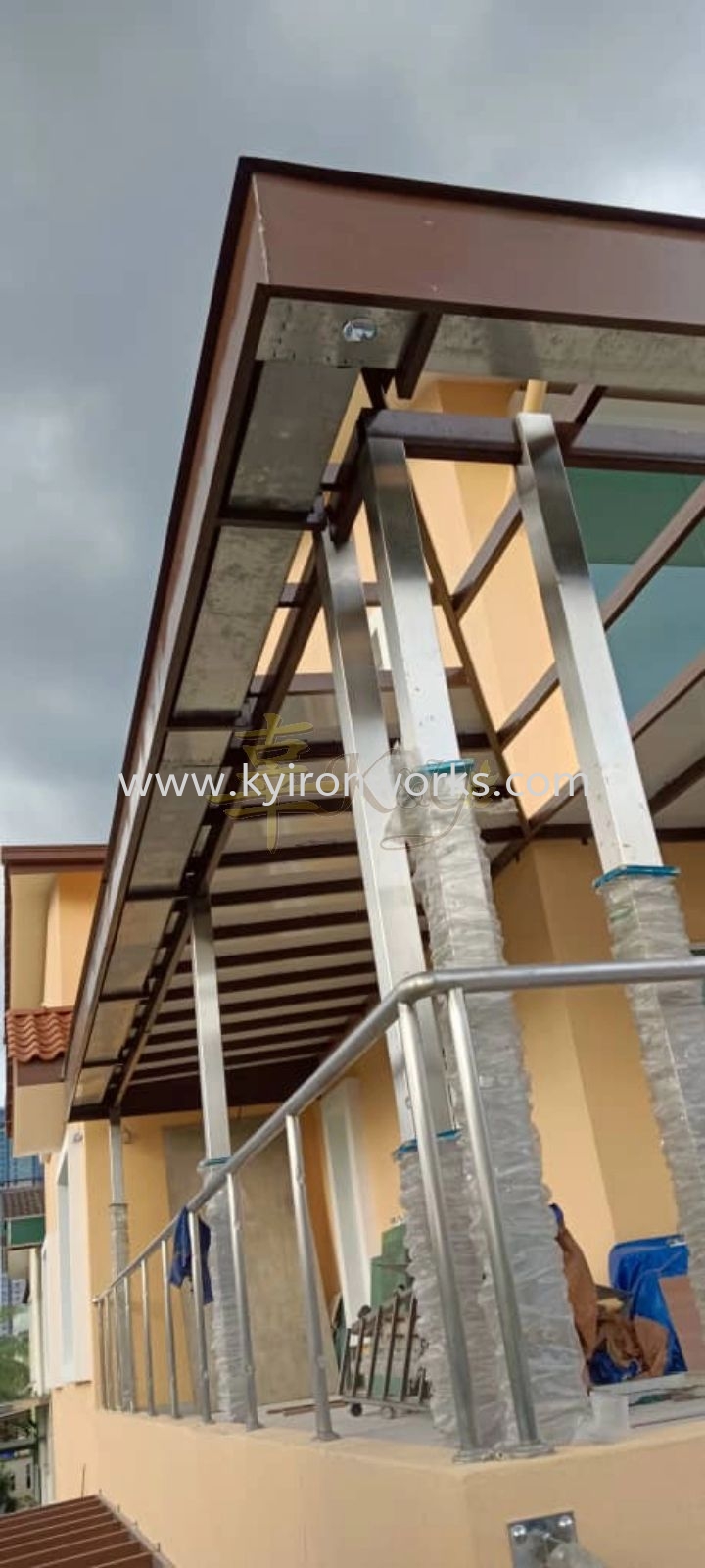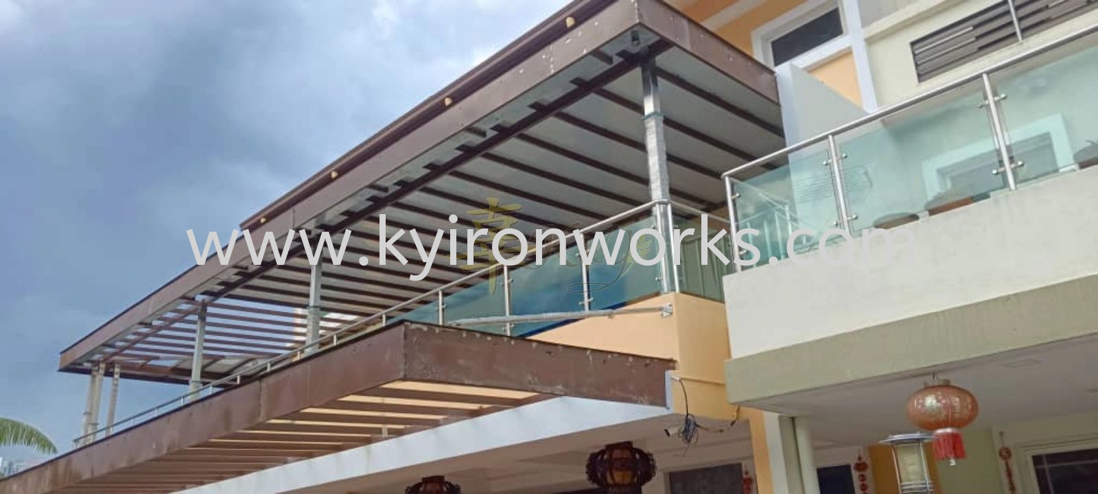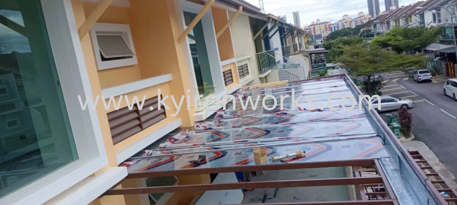 Installation Mild Steel Aluminium Strip Ceiling Awning at Kepong