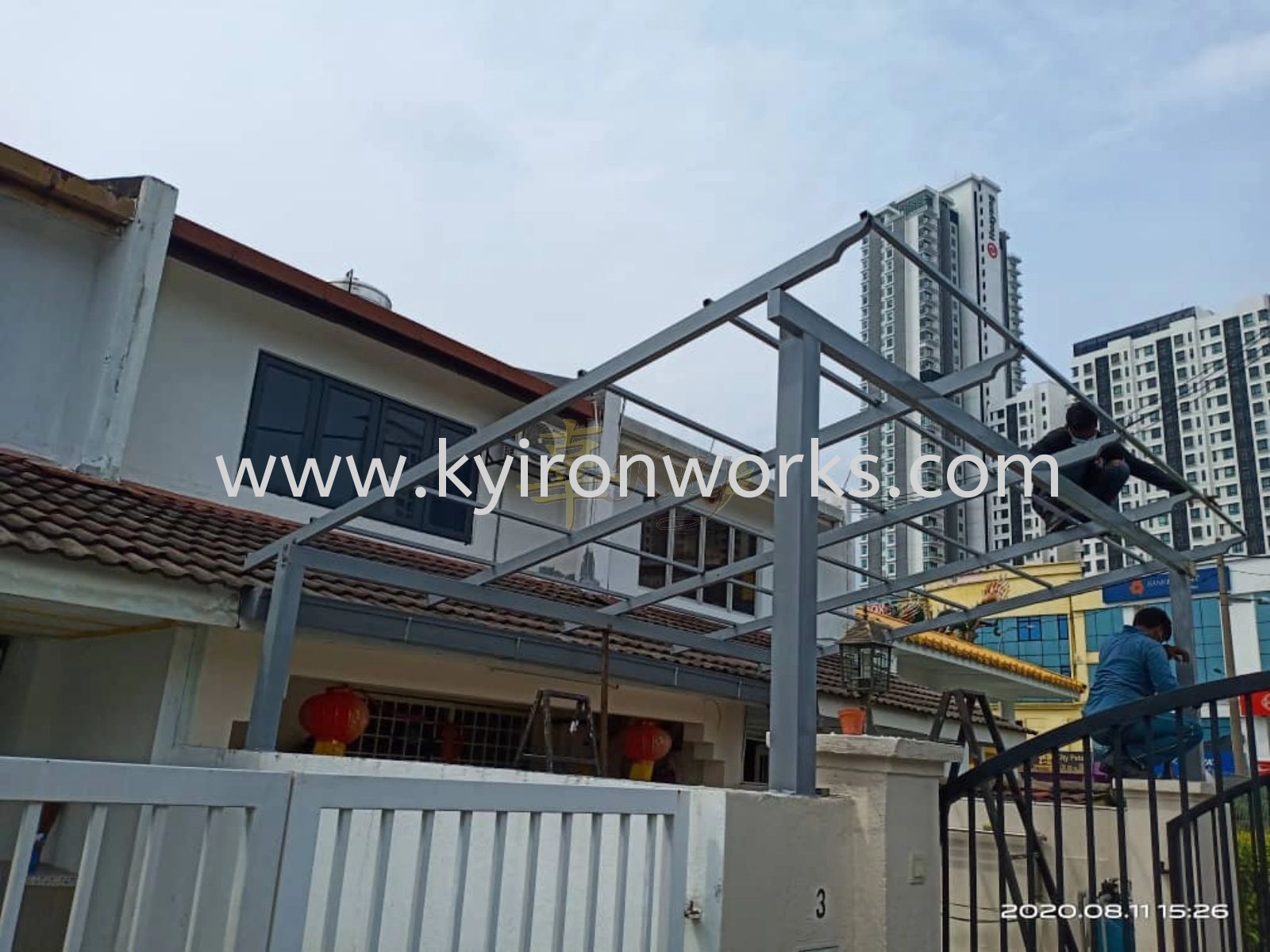 Installation Mild Steel Metal Deck Pergola Roof Awning At Nilai
