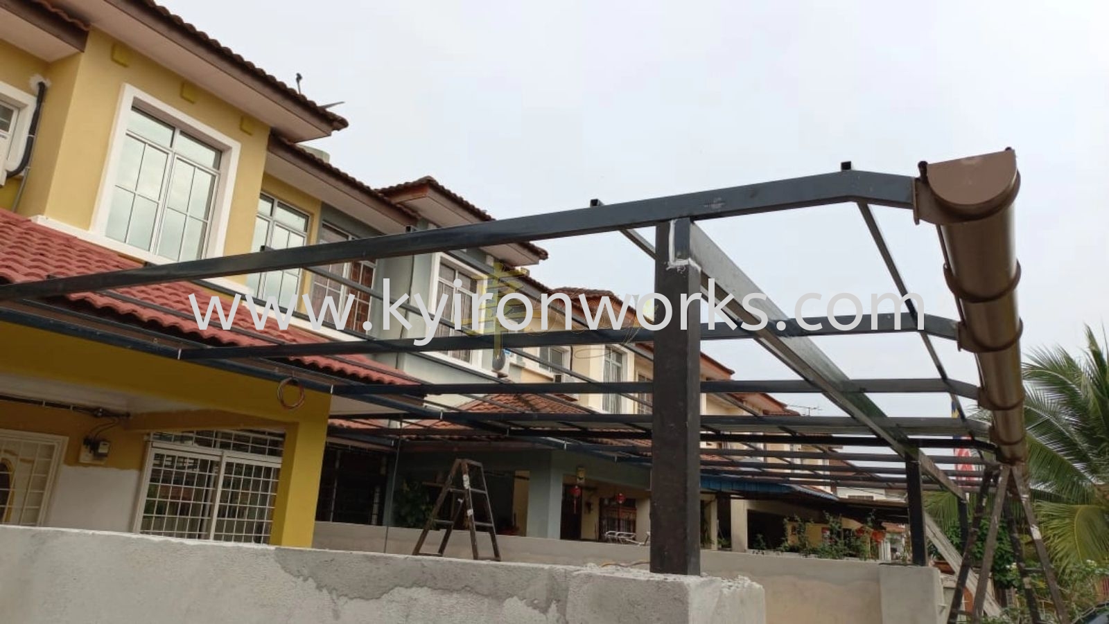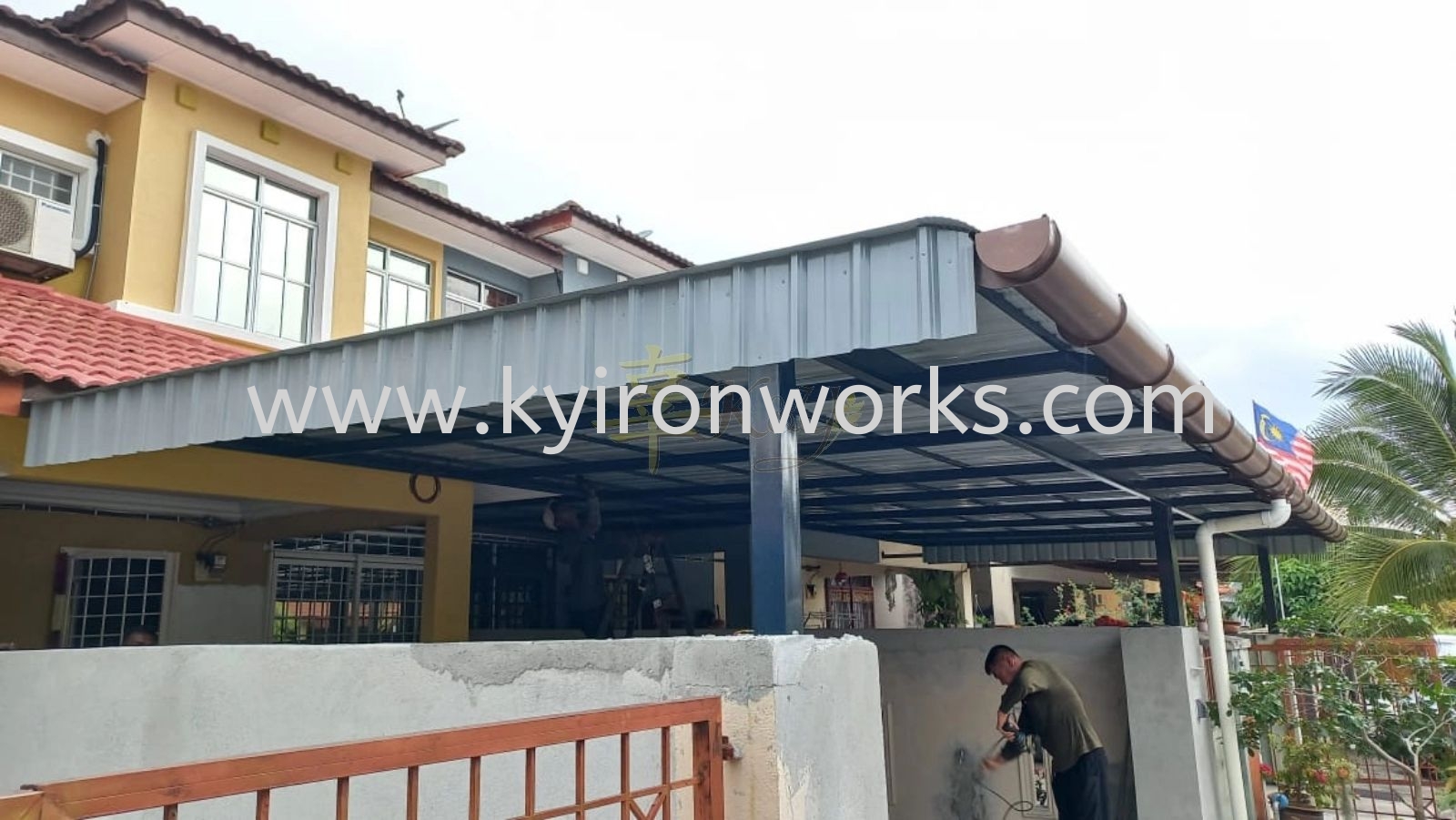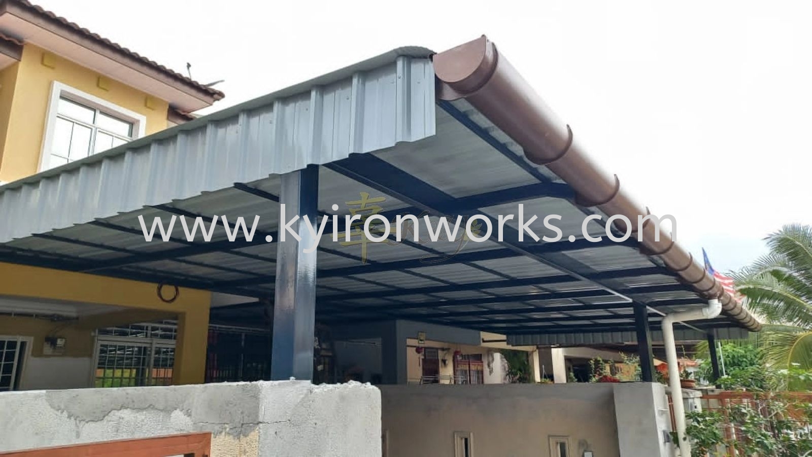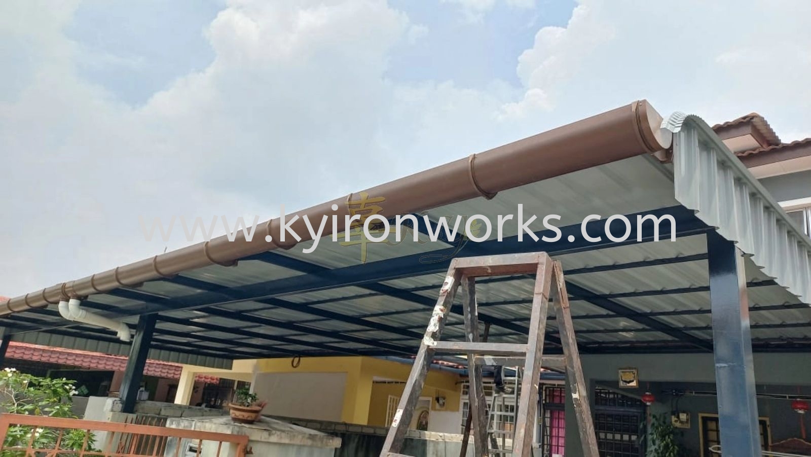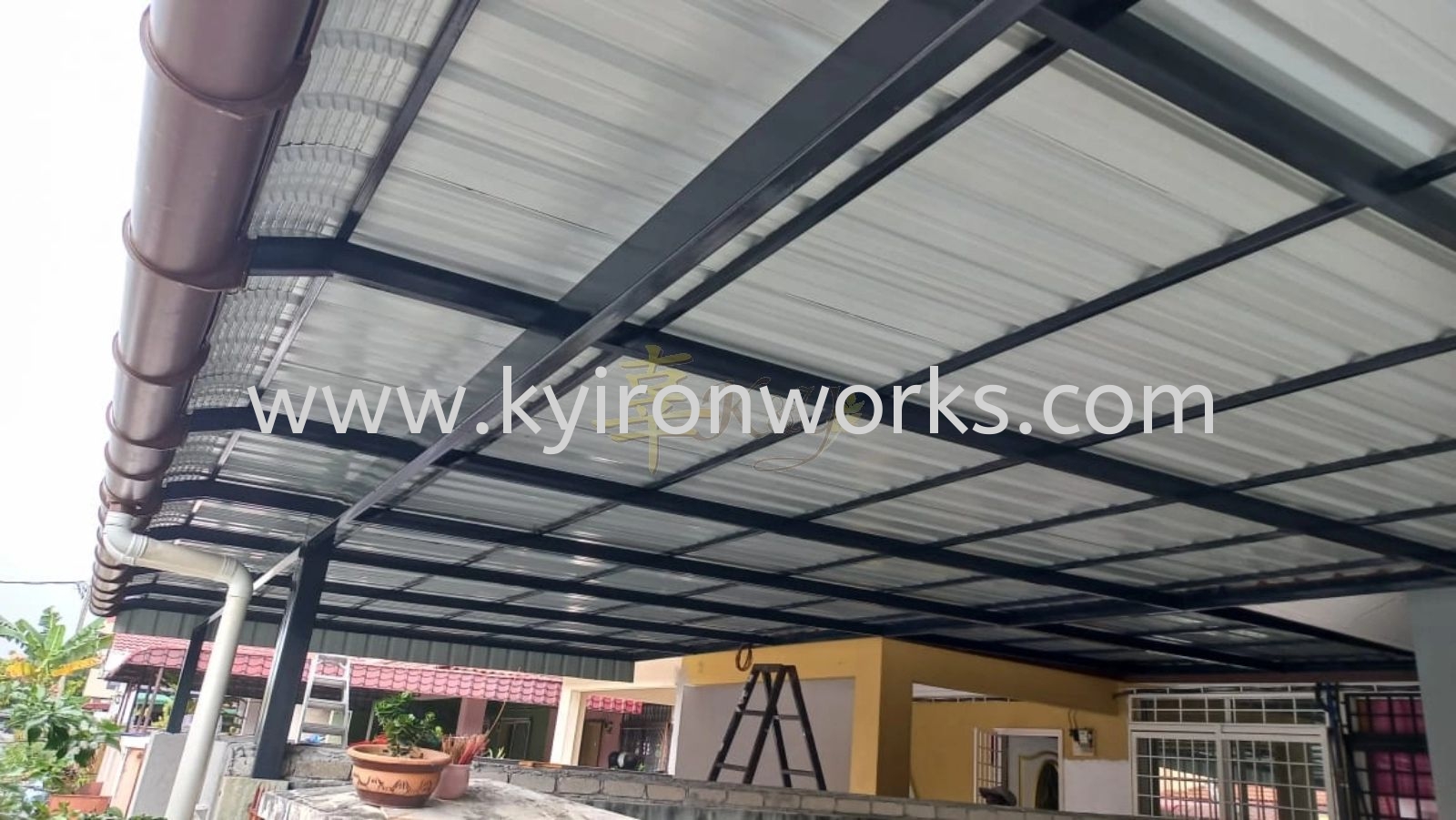 Installation Mild Steel Metal Deck Pergola Roof Awning with PVC Gutter at Kajang