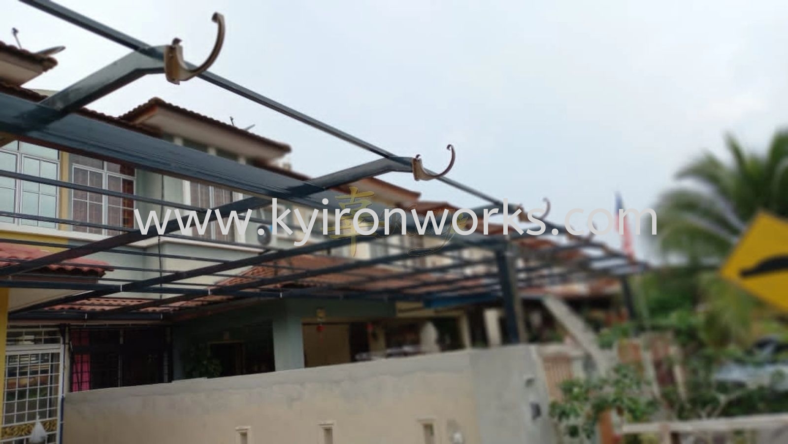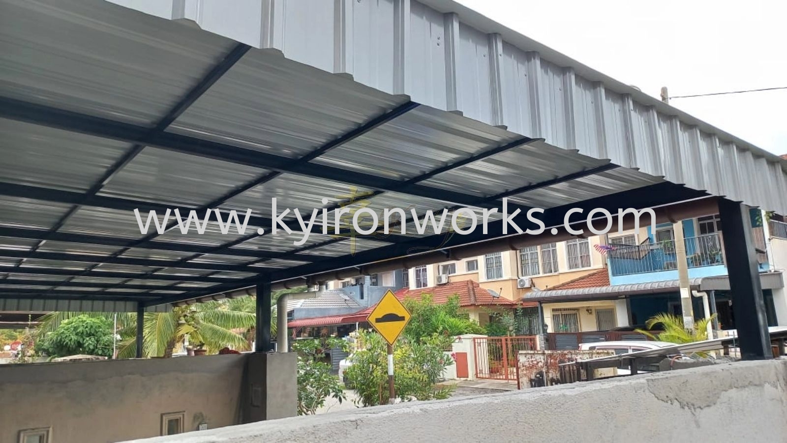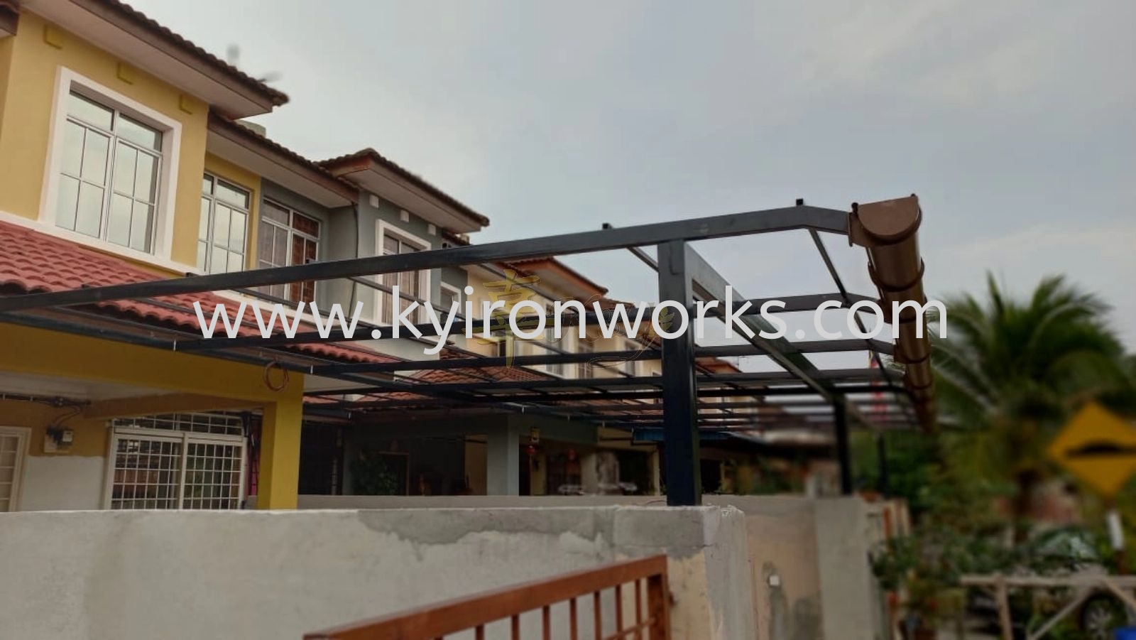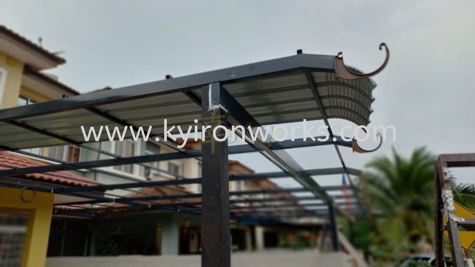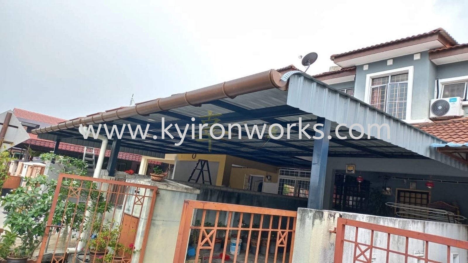 Installation Mild Steel Metal Deck Pergola Roof Awning with PVC Gutter at Kajang