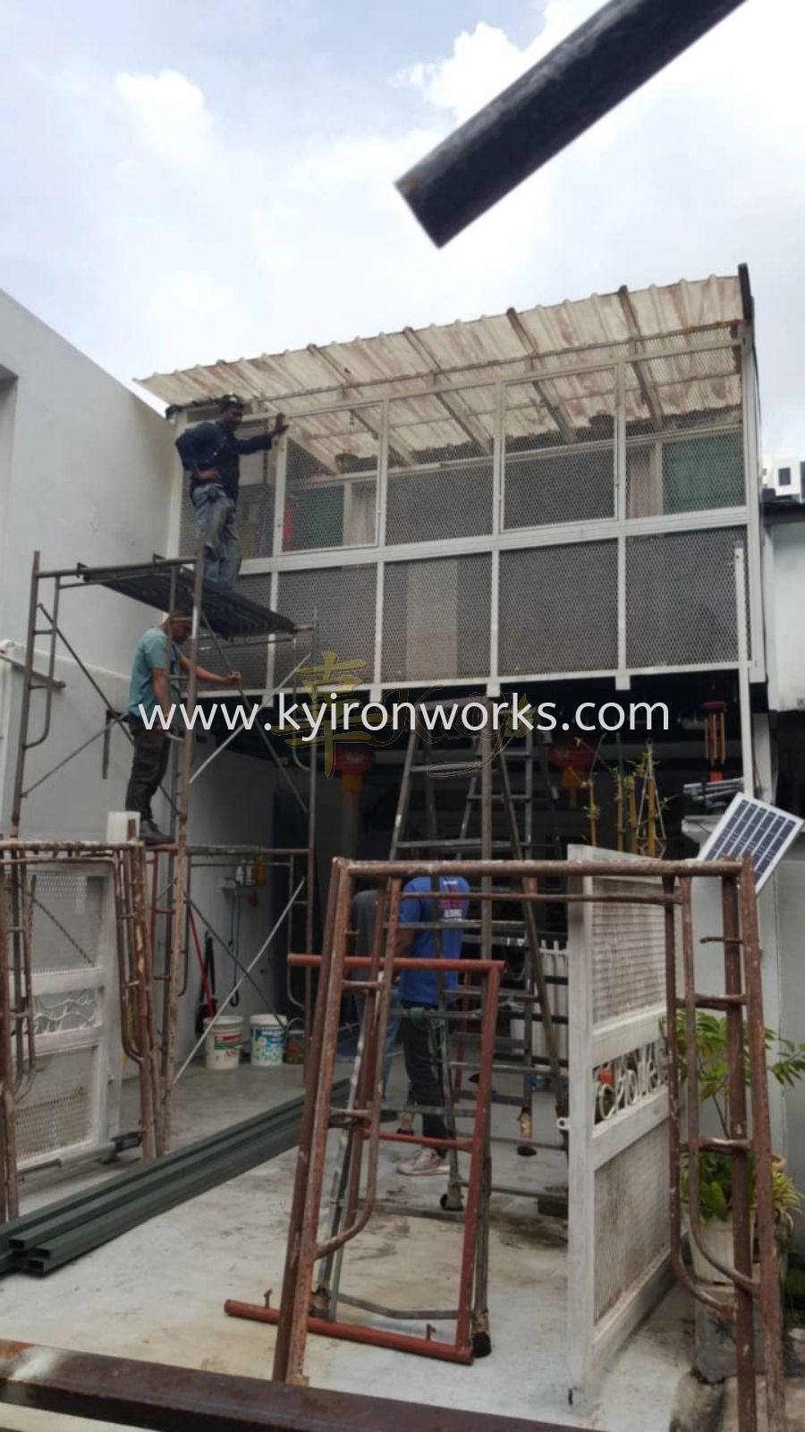 Installation Mild Steel Metal Deck Zink & Poly Glass Awning at Kepong