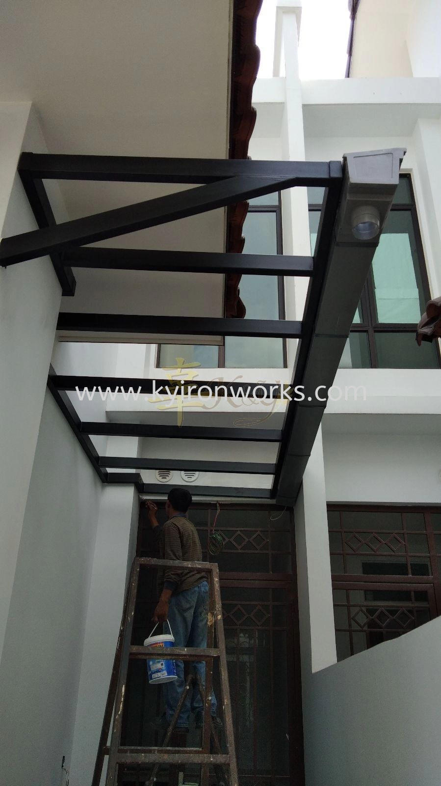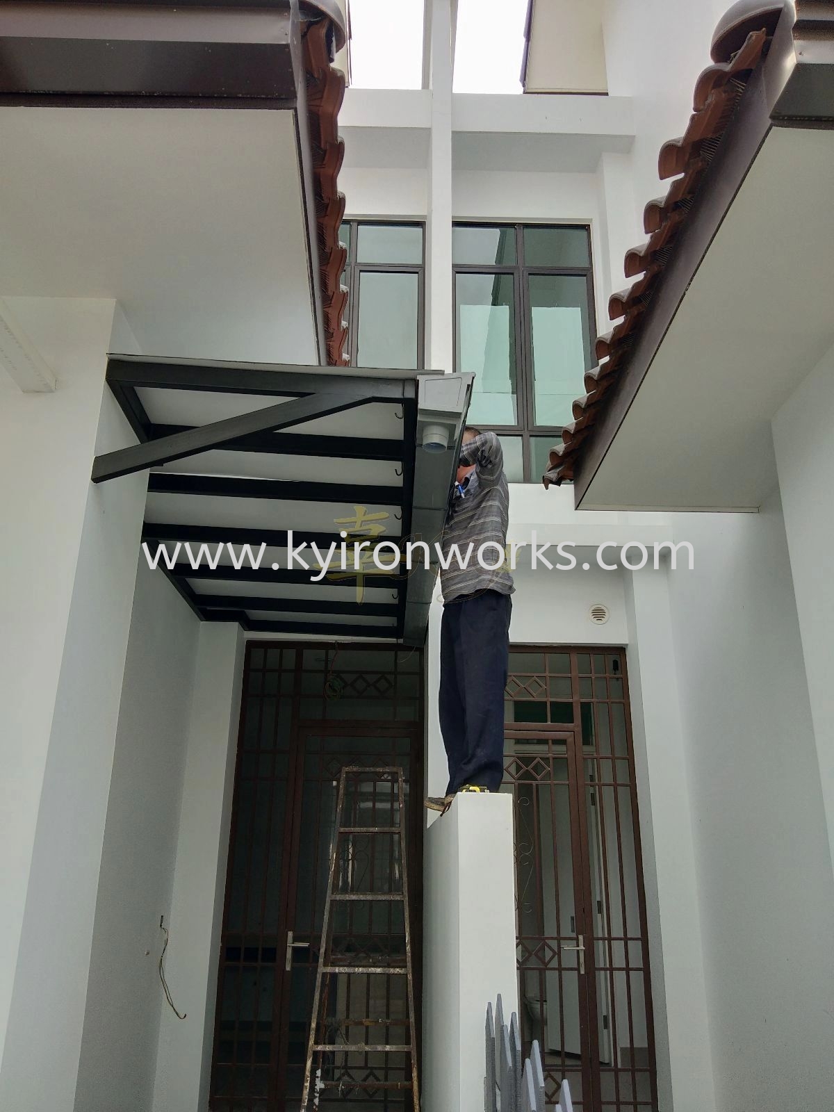 Installation Mild Steel Aluminium Composite Panel (ACP) Pergola Roof Awning at Eco Majestic in Semenyih