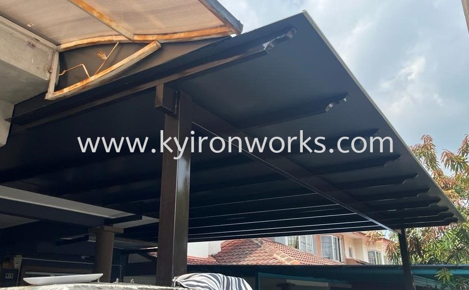Installation of Mild Steel Aluminium Composite Panel (APC) Pergola Roof Awning with Metal Zink Cover in Cheras