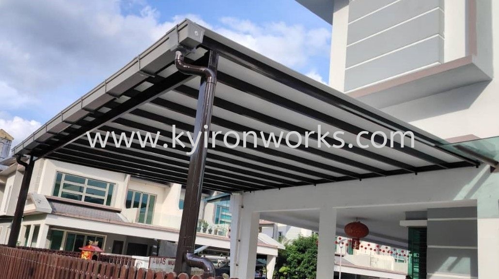 Installation Mild Steel Aluminium Composite Panel (ACP)Pergola Roof Awning with PVC Gutter at Bandar Teck Kajang