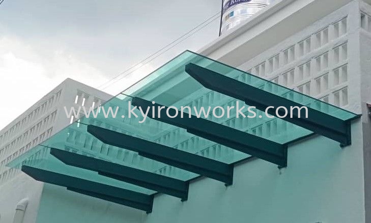 Installation Mild Steel Tbean Laminate Glass Roof Awning at Kepong