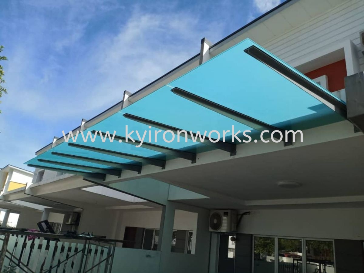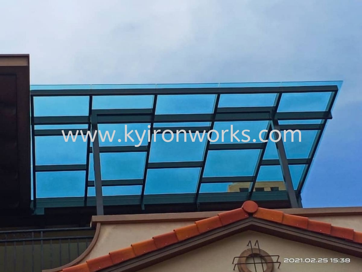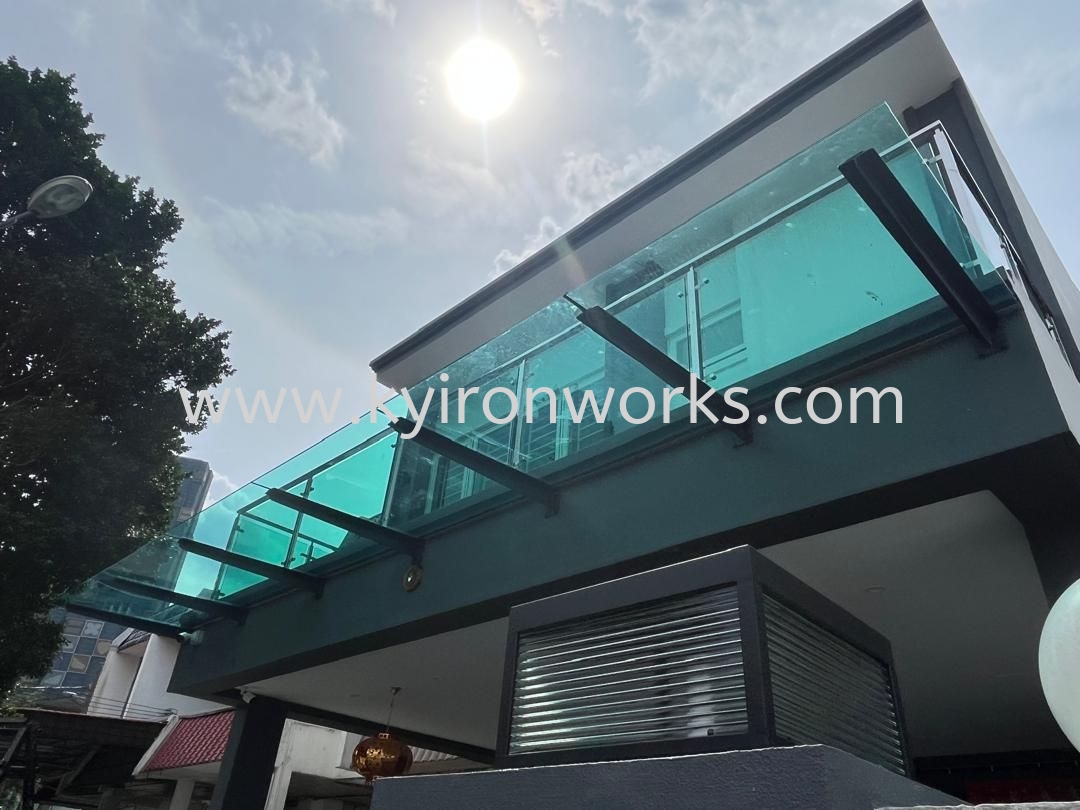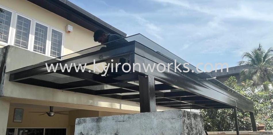 Installation Mild Steel Laminate Glass Roof Awning at Eco Majestic Semenyih