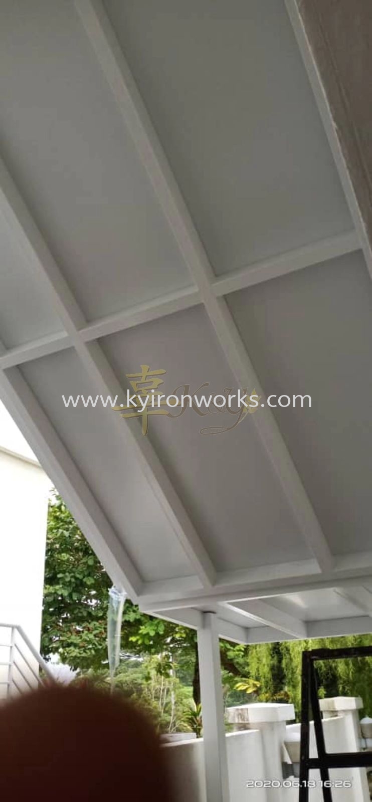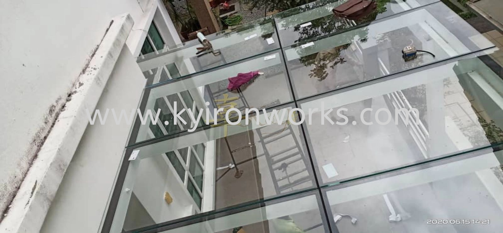 Installation Mild Steel Laminate Glass Roof & Aluminium Composite Panel (ACP) Roof Awning at Damansara