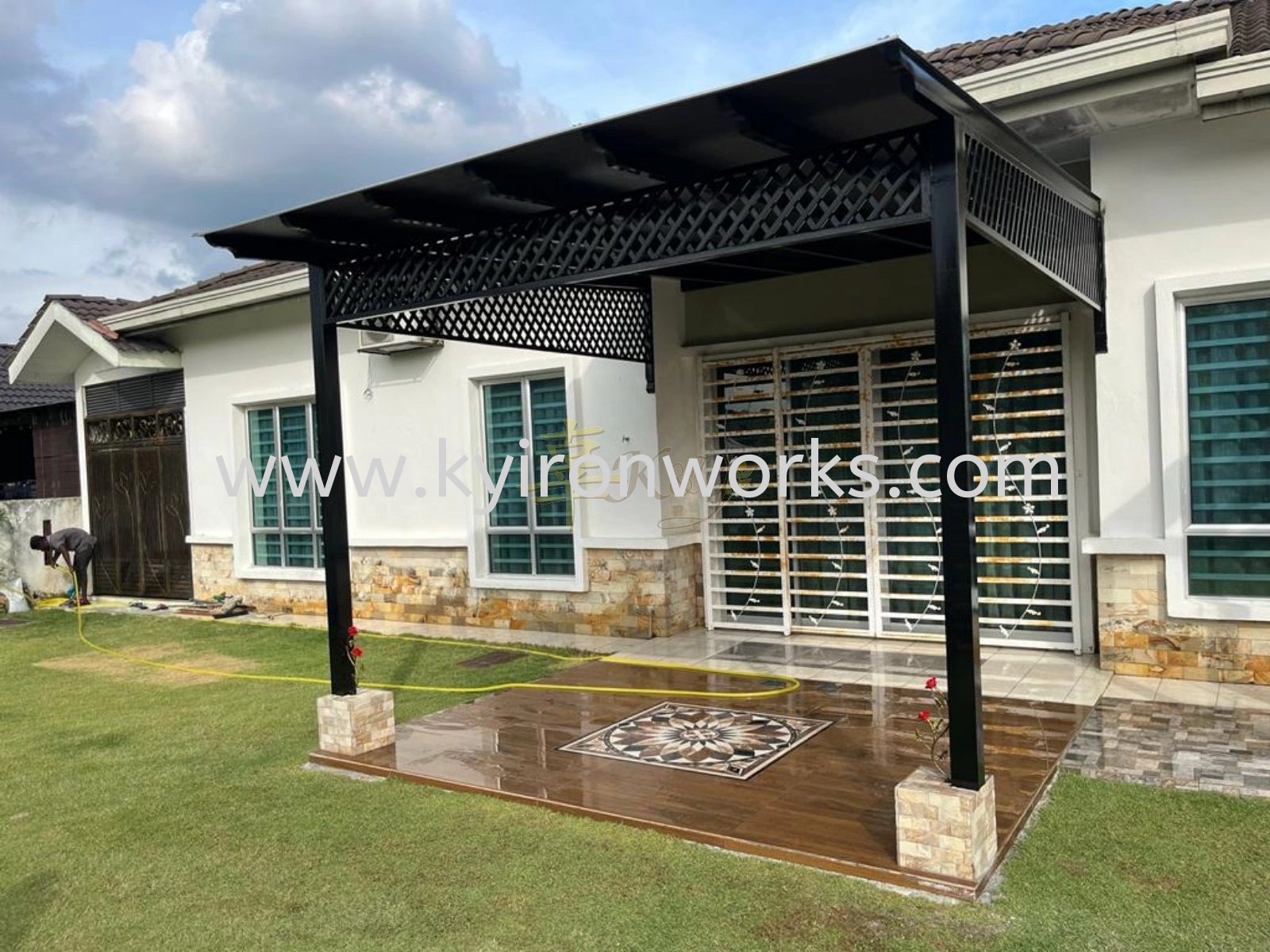 Installation Mild/Wrought Iron Steel Polycarbonate Pergola Roof Awning at Kajang