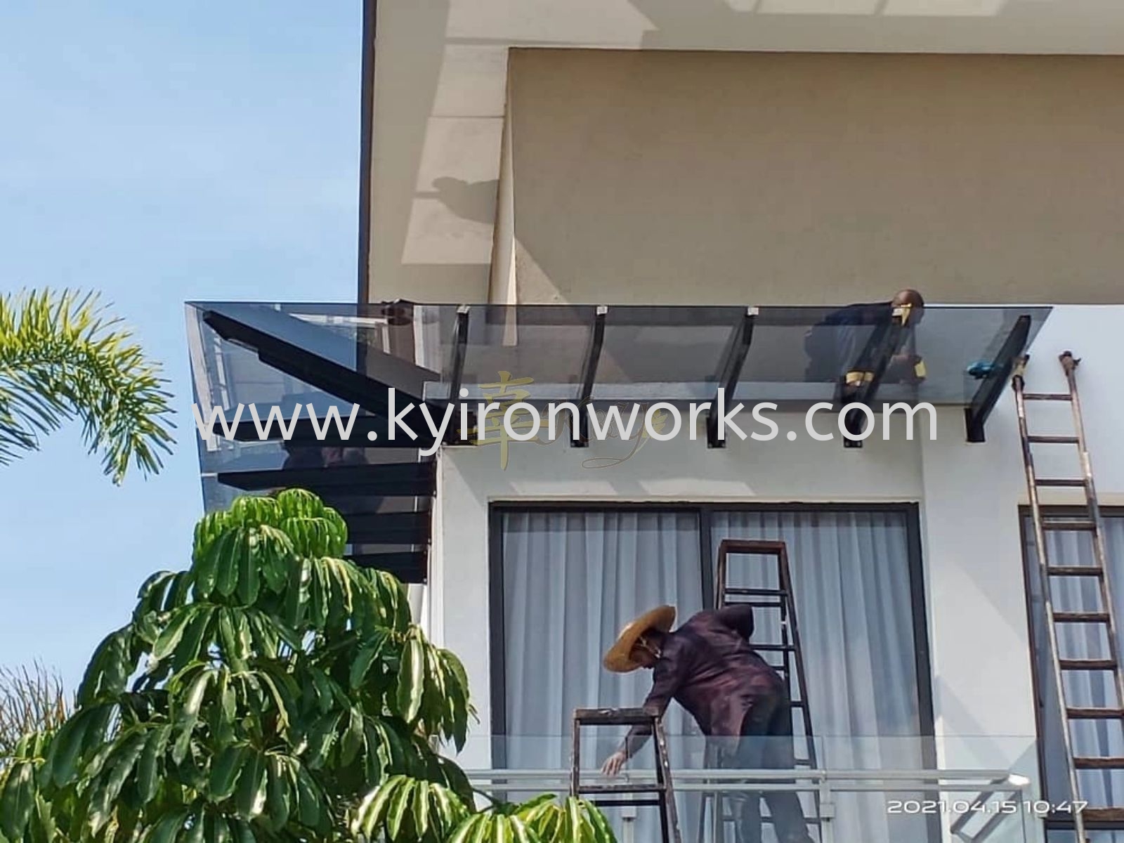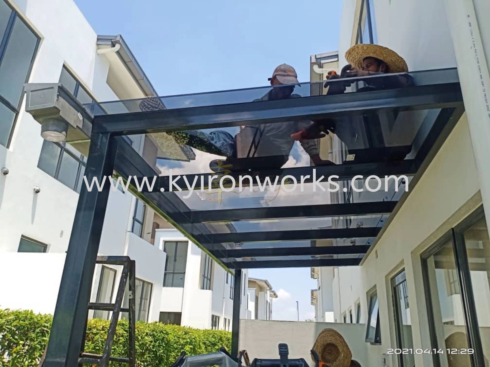 Installation Mild Steel Laminate Glass Pergola Roof Awning at Eco Magestic Semenyih