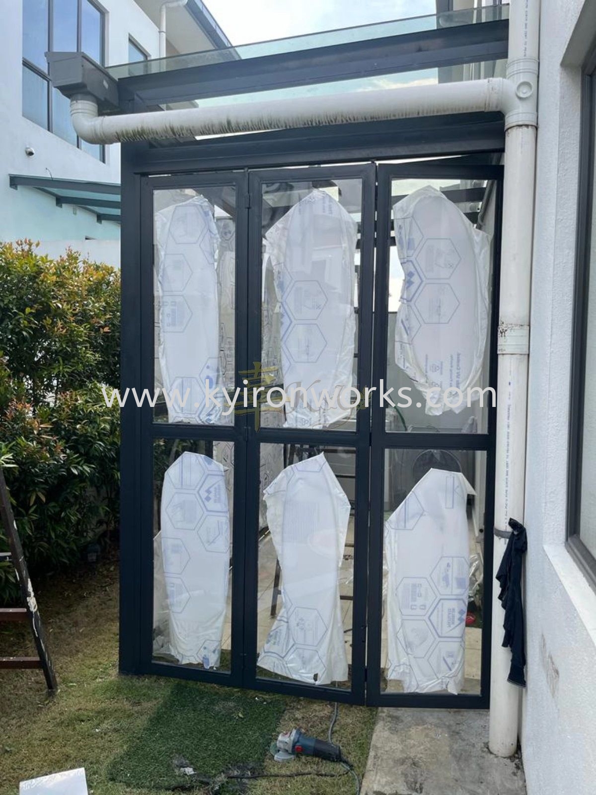 Installation Mild Steel Folding Door bundle Polycarbonate Sheets at Bangi
