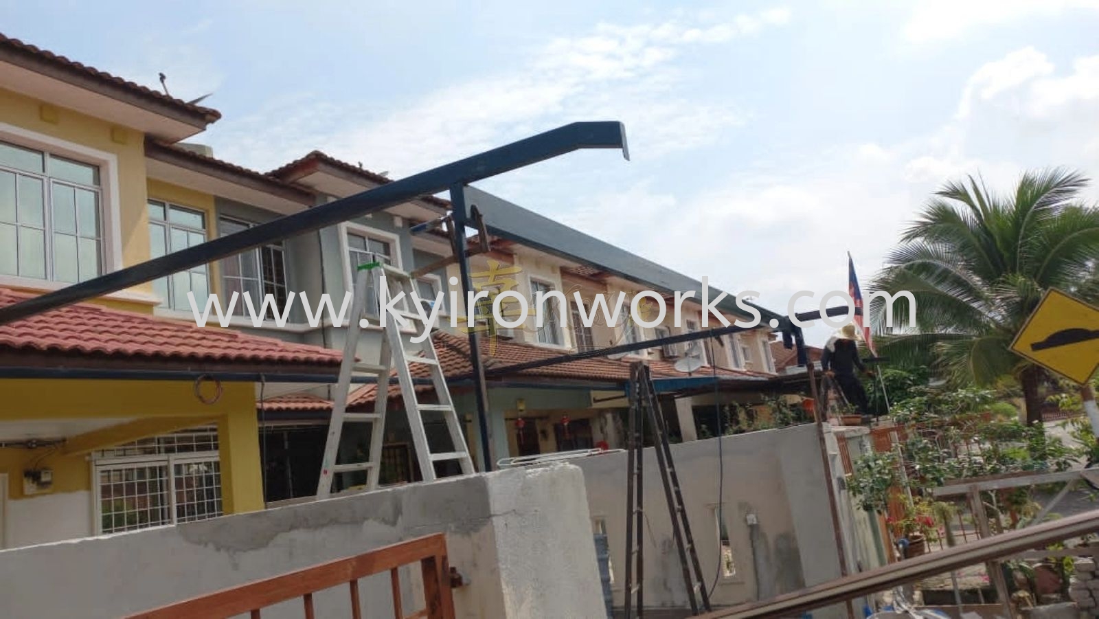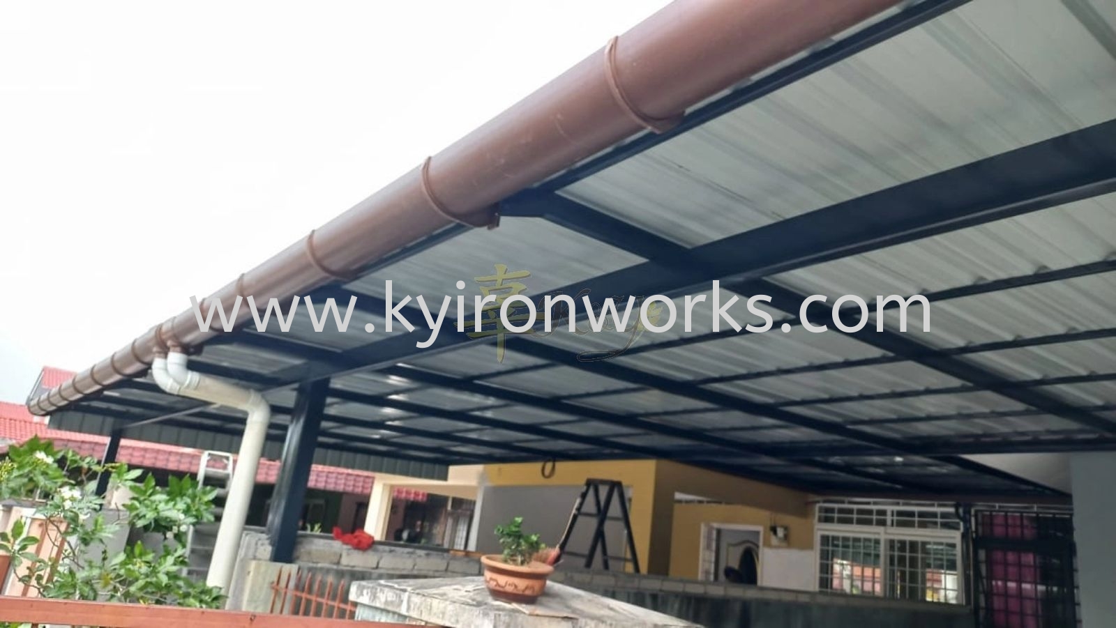 Installation Mild Steel Metal Deck Pergola Roof Awning with PVC Gutter at Kajang