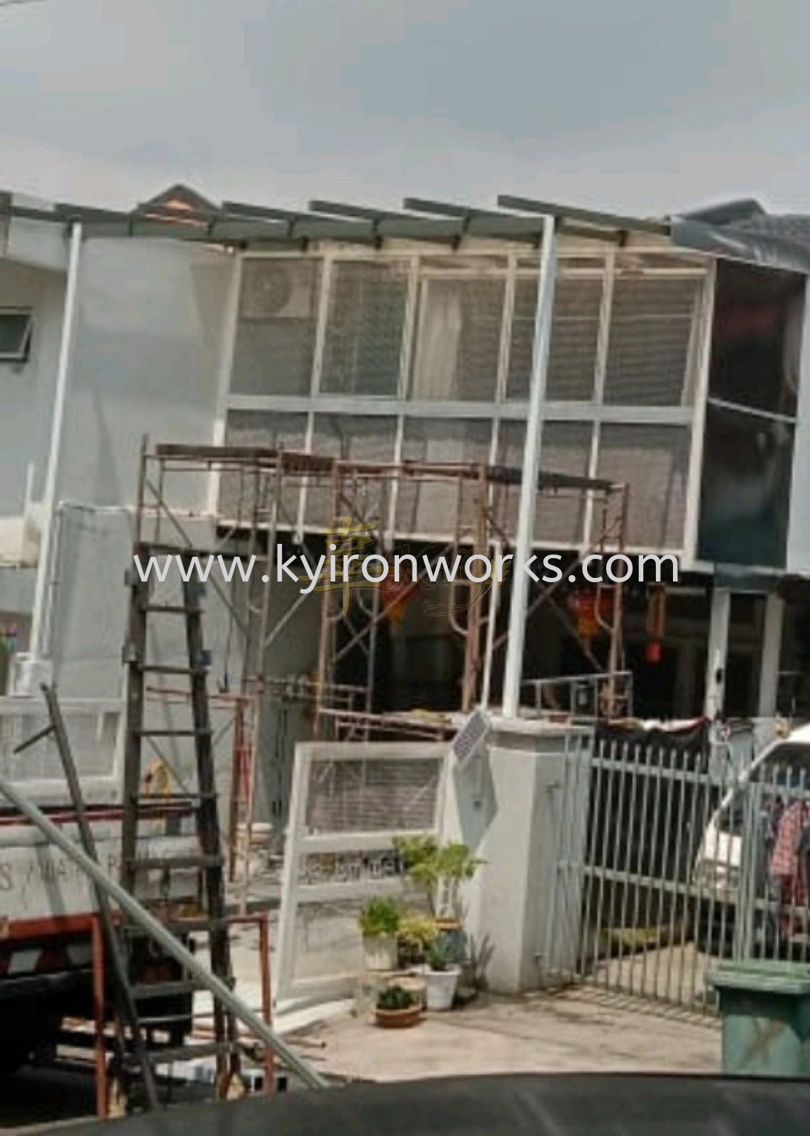Installation Mild Steel Metal Deck Zink & Poly Glass Awning at Kepong